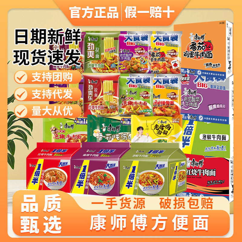 康师傅方便面经典大食袋big番茄酸辣红烧牛肉拉煮泡面整箱批发