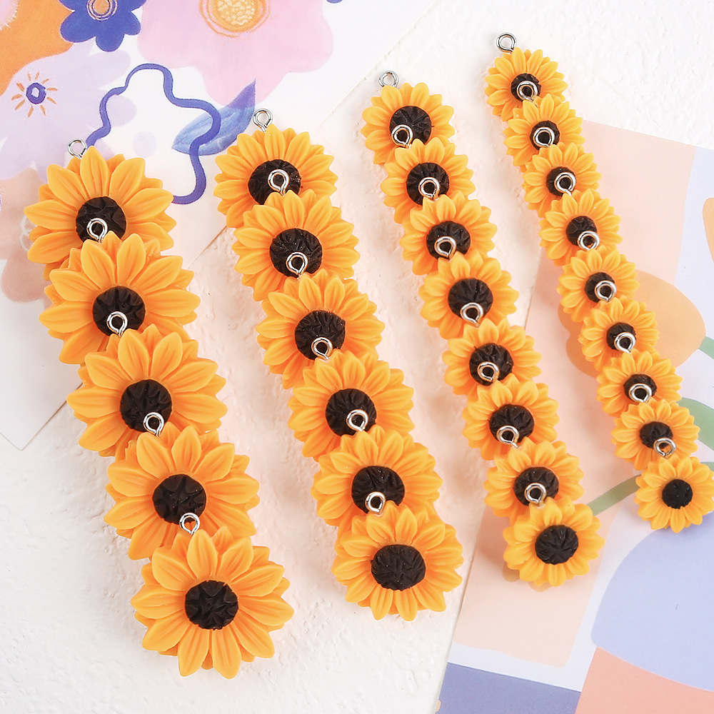 带羊眼挂圈向日葵太阳花diy钥匙扣项链挂件手工饰品材料 树脂配件