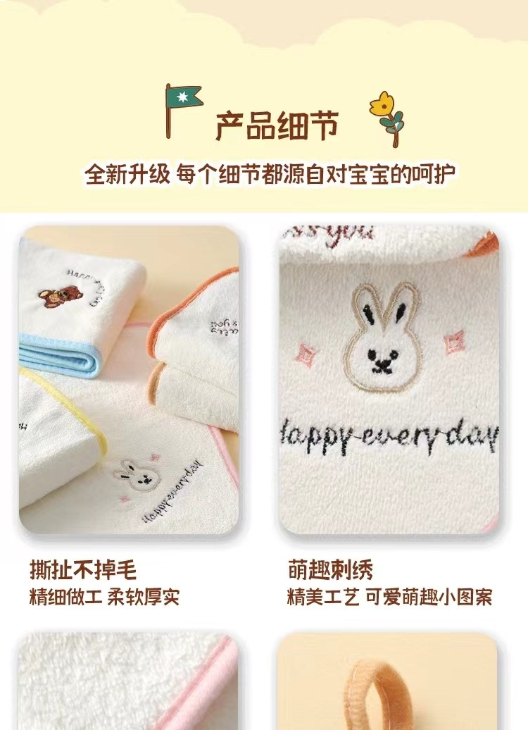 婴儿毛巾 柔软亲肤口水巾儿童毛巾珊瑚绒吸水婴儿小方巾宝宝毛巾