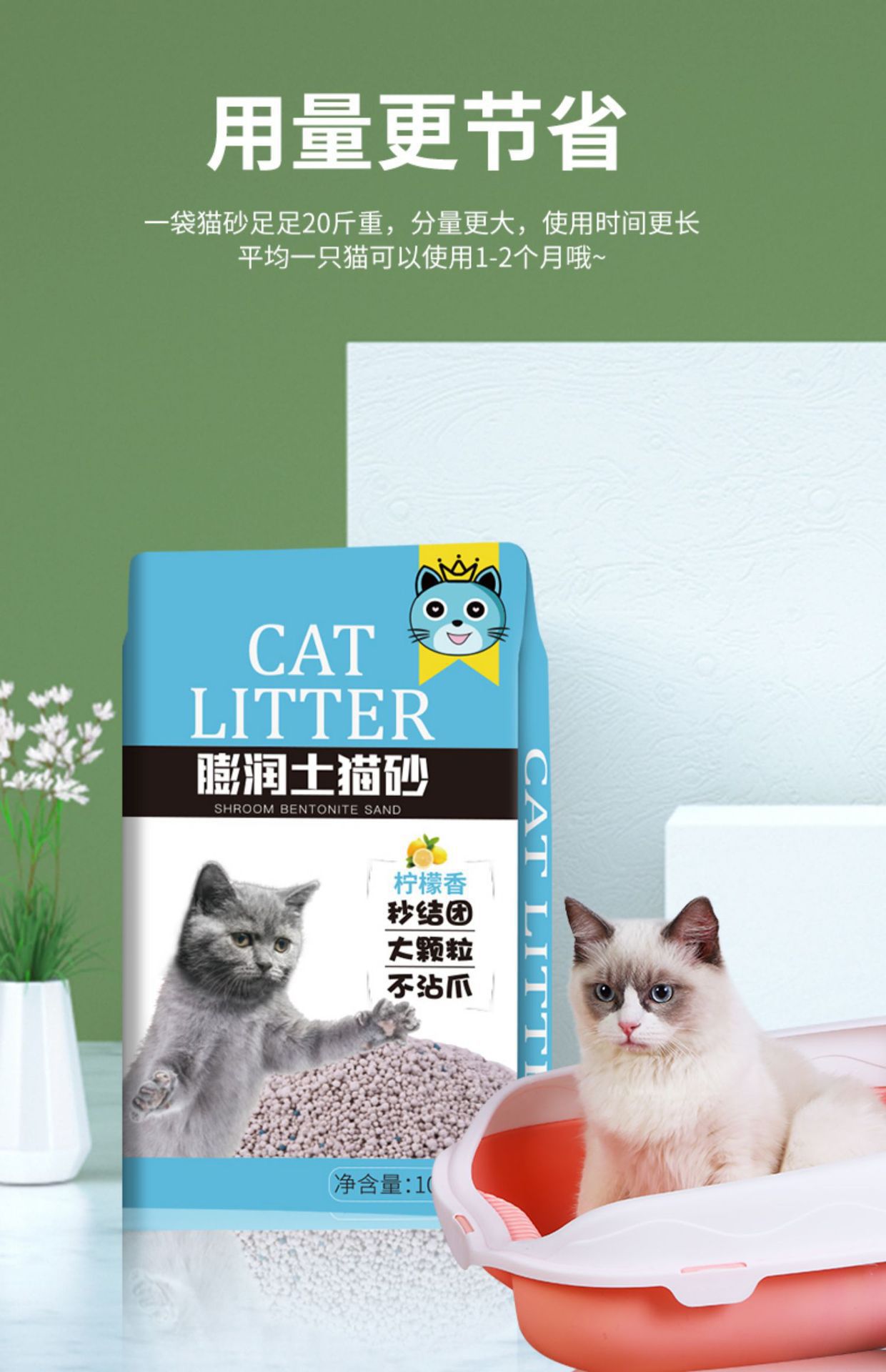 レモン猫砂包郵便10キロ脱臭結団猫砂ベントナイト低塵猫砂10kg 20斤猫用品