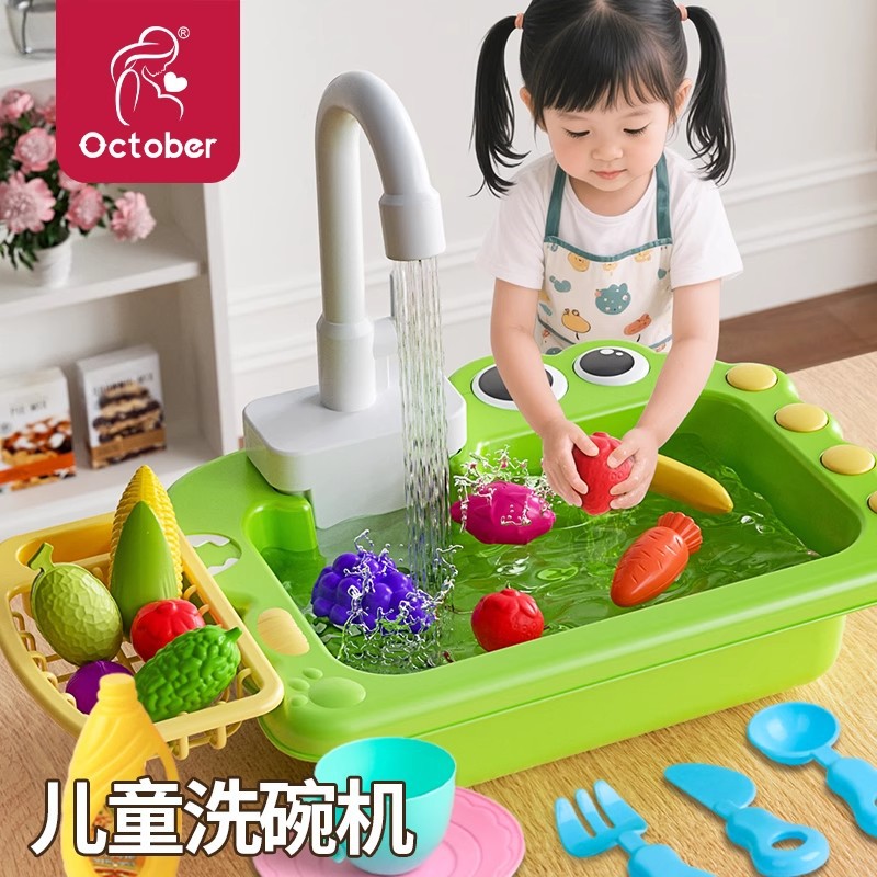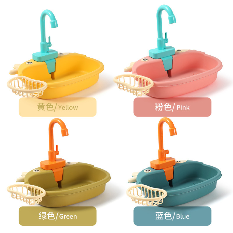 国境を越えた子供の台所で食器を洗うおもちゃが循環して水を出す電動玩具のままごとの野菜を洗う機の野菜を洗う鉢の水遊び