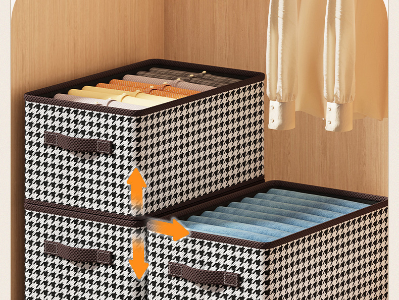 服収納ボックス千鳥格家庭用箪笥ズボン整理箱布芸箱折り畳み硬板寮収納枠
