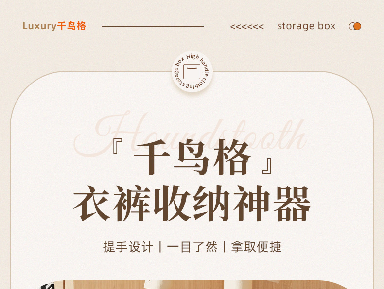 千鳥格服収納ケース蓋付き折り畳み可能布芸家庭用整理タンス衣類ズボンスチールフレーム不織布