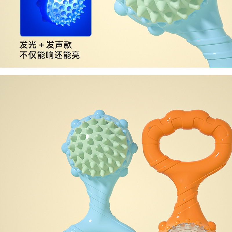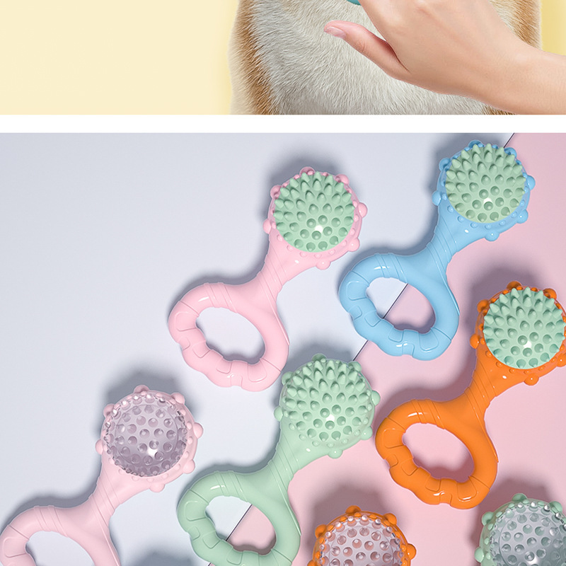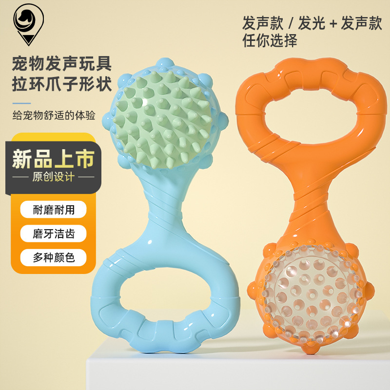ペットのおもちゃの新品の手で輪を引いてインタラクティブに音を立てます。ボールをかじって歯ぎしりをします。