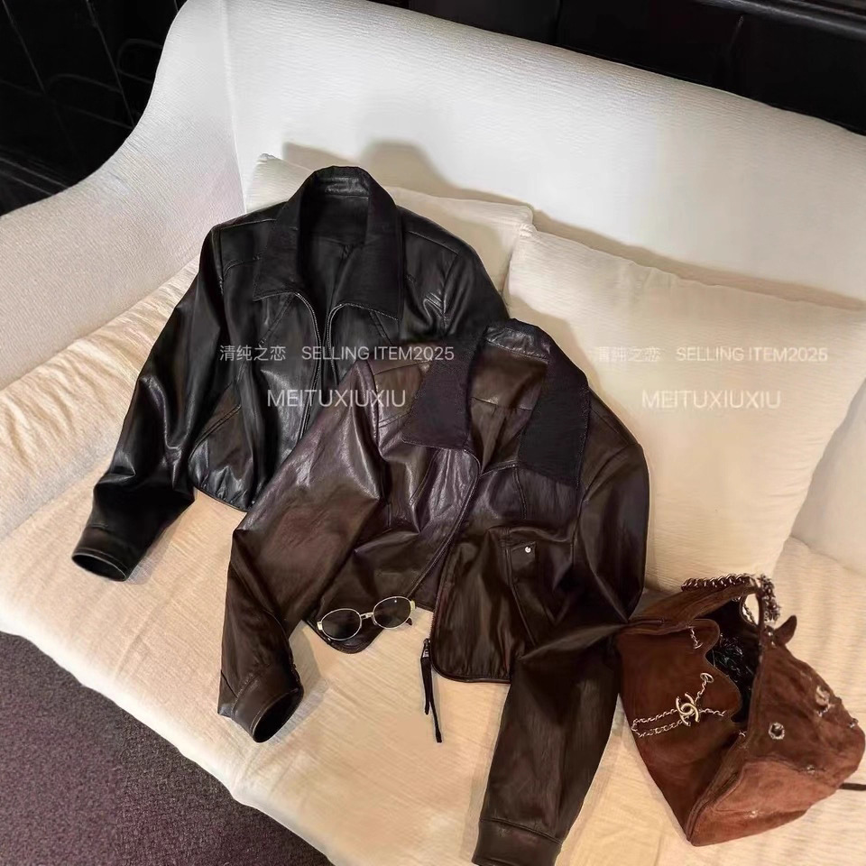 时尚翻领PU皮衣外套女欧洲站欧货2025秋季新款百搭显瘦夹克上衣潮