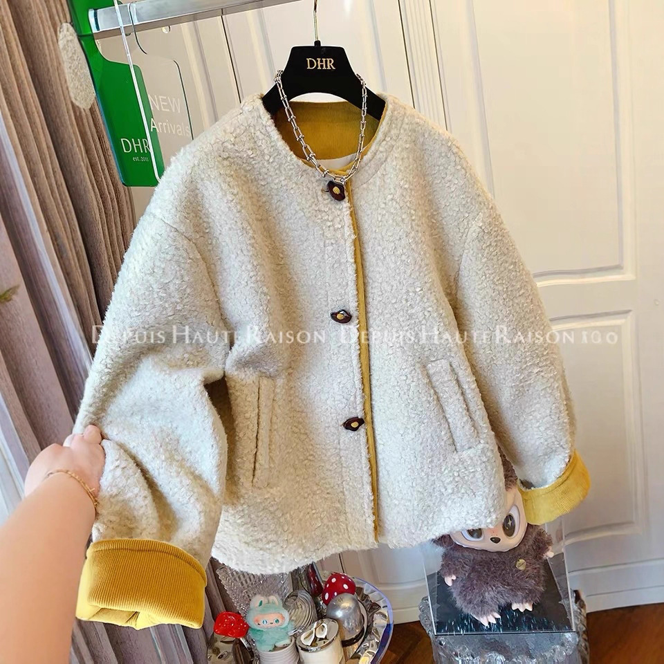 高级感圆领圈圈毛呢短款外套宽松小个子上衣女装2025冬季新款
