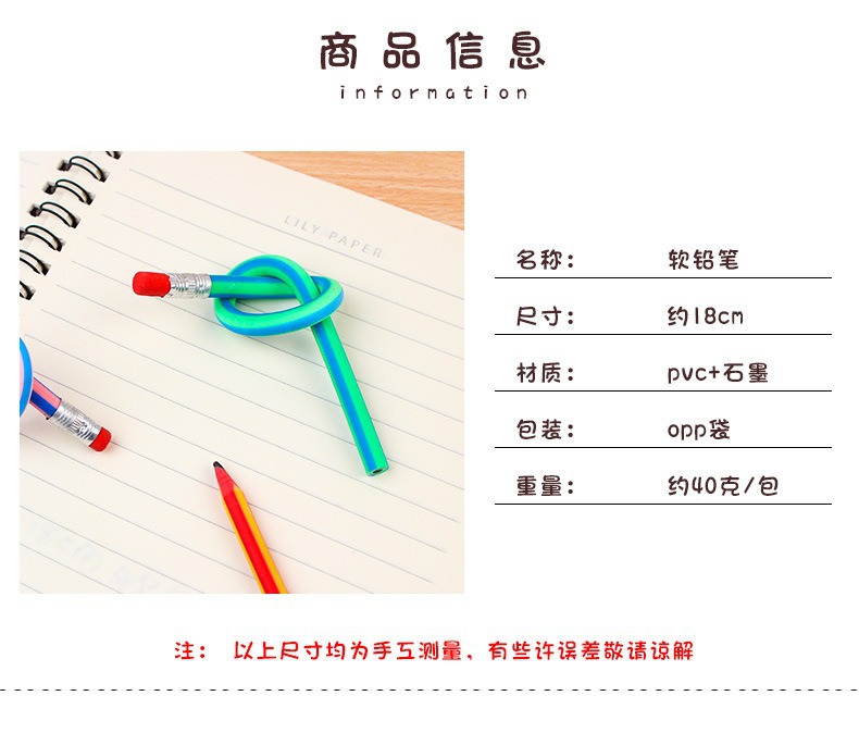 曲がるソフト鉛筆、折れないかわいい鉛筆、小学生向けクリエイティブ賞品、プチギフト、曲がりペン賞品、ソフト鉛筆