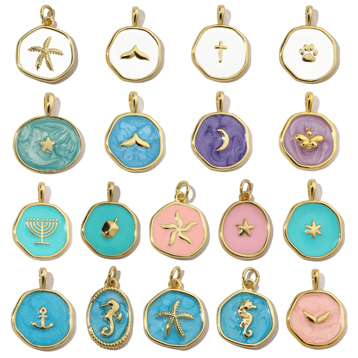 海洋クロス油滴ペンダント星三日月diyアクセサリー海馬猫爪ネックレスイヤリングペンダント