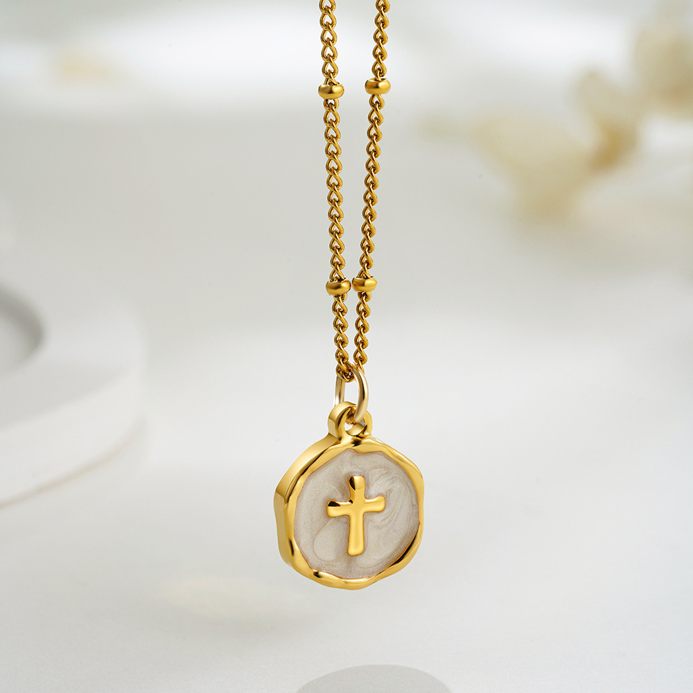 跨境时尚新款吊坠热卖项饰滴油不规则圆形十字架项链百搭简约