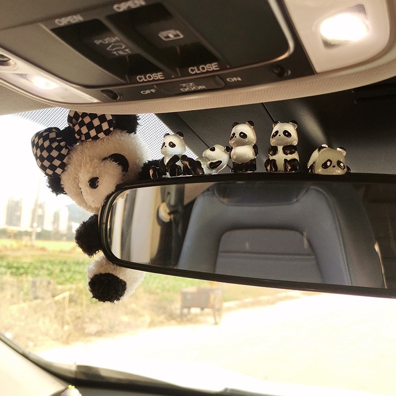 かわいいパンダの車の装飾の中で制御のスクリーンの反射のバックミラーの置物の車の公仔の車内の装飾品の置物の女性