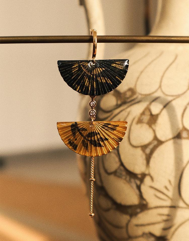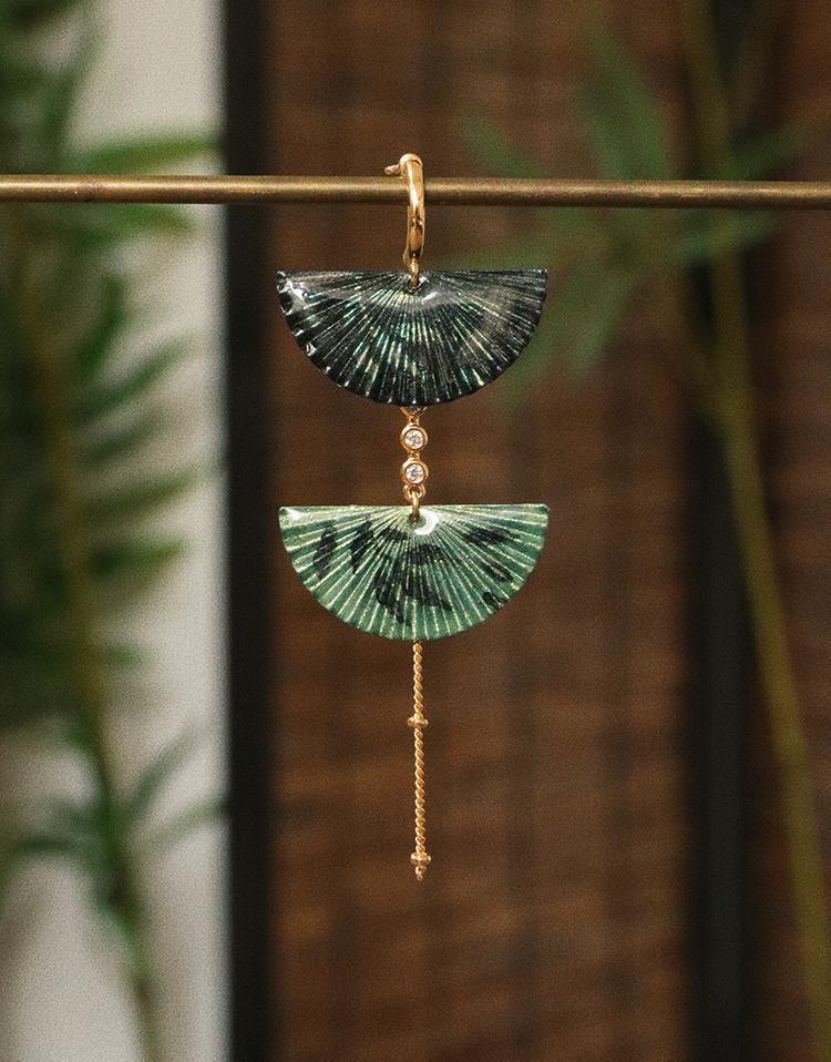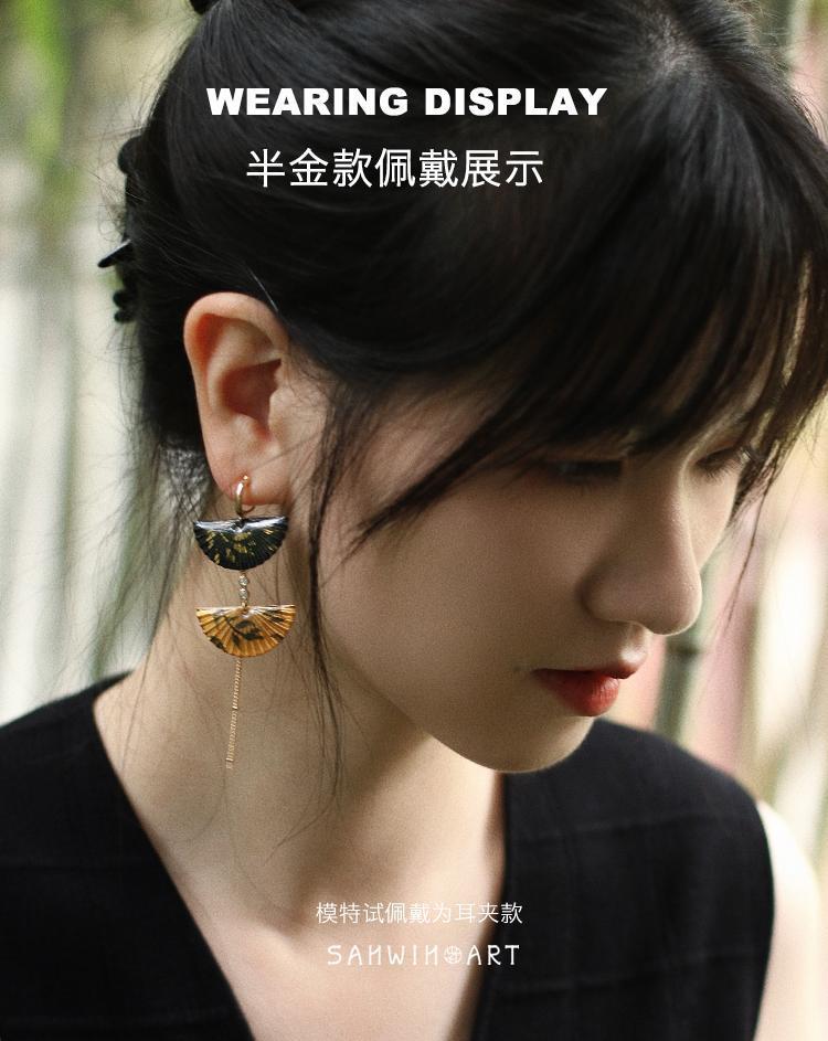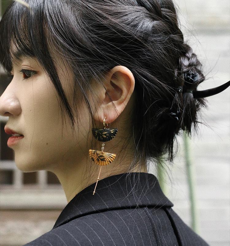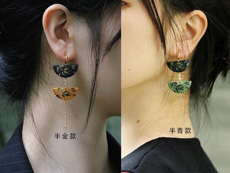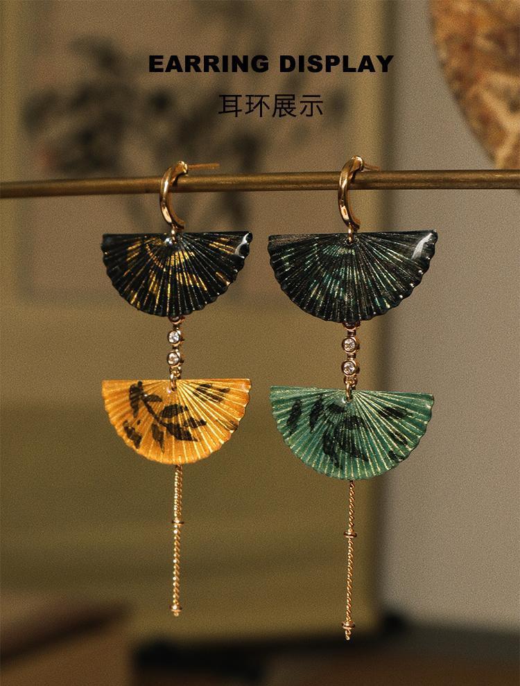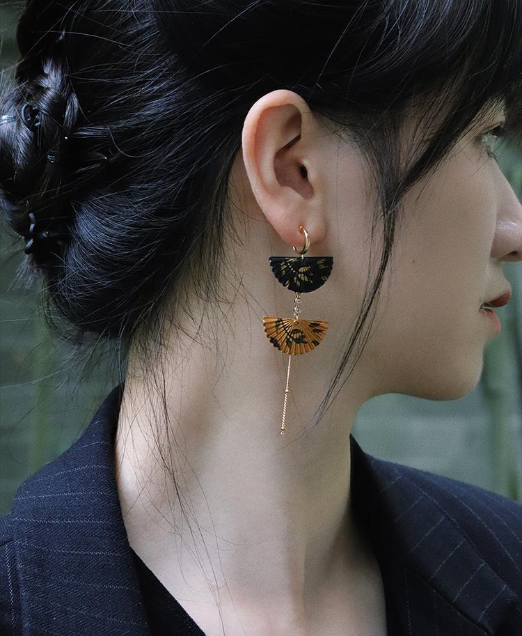 山印集手描き【畳扇・連】中国式伝統色扇形ロングイヤリング