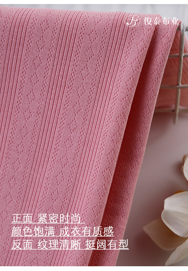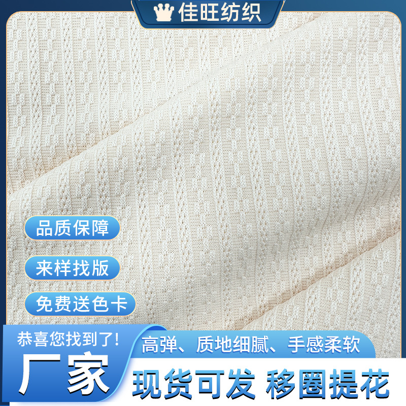 210g全涤移圈提花罗纹抽条梅花提花面料T恤家居服吊带针织面料
