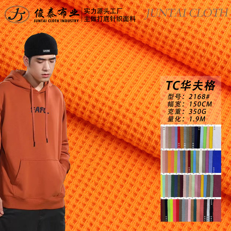 両面ワッフルTCポリエステル綿230g250弾力パイナップル格威化格筋理感ニットワッフル生地
