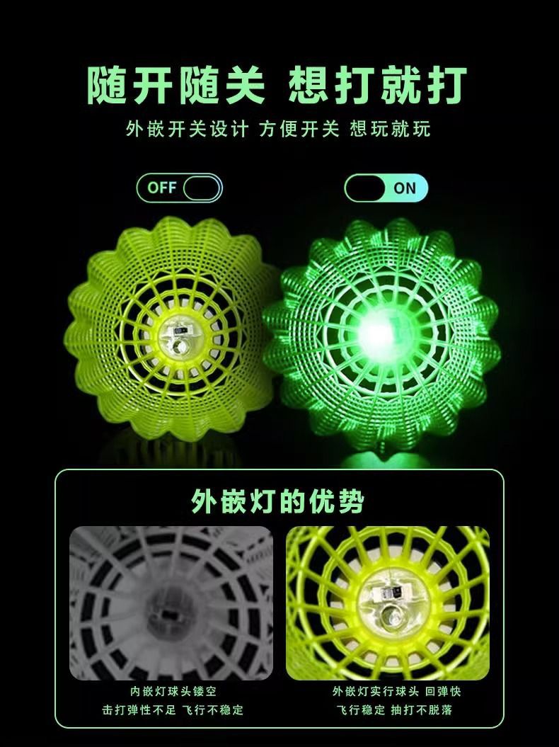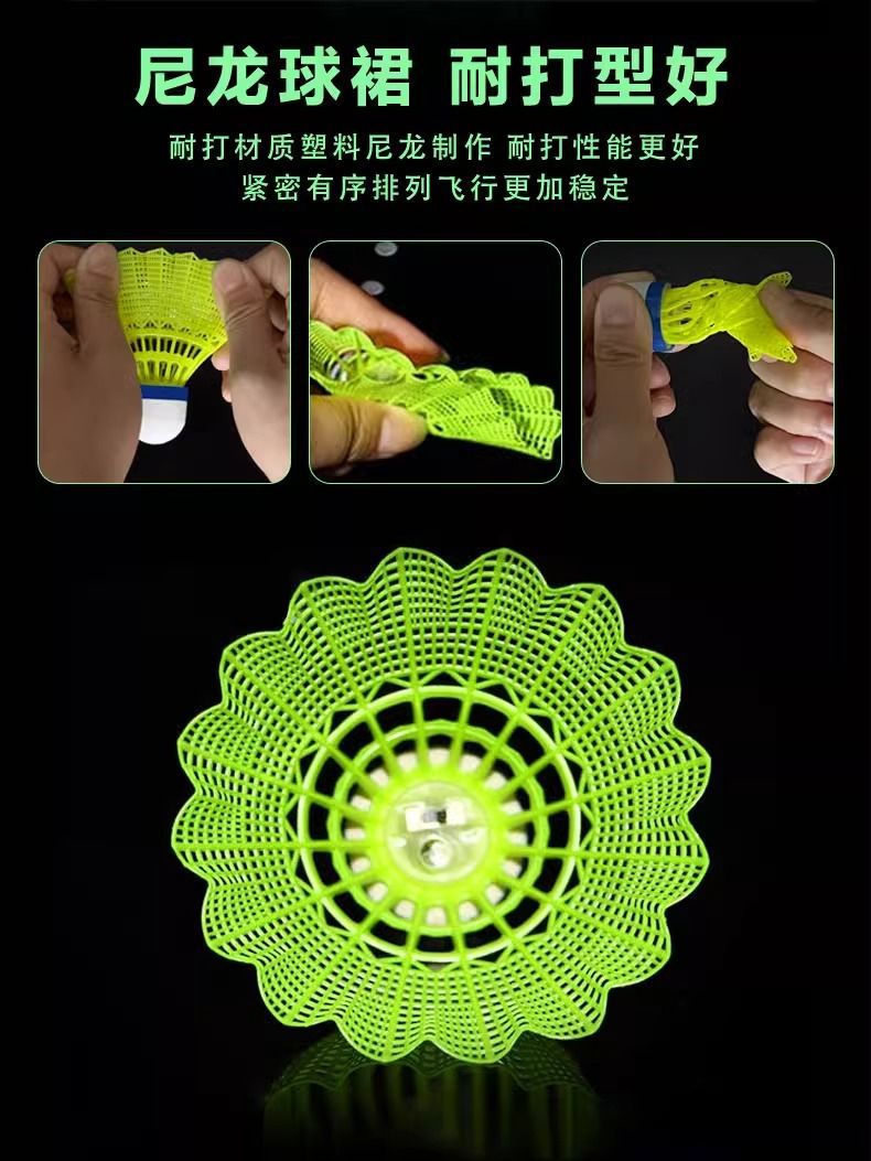 夜光バドミントンプラスチック防風耐打訓練ナイロン夜間蛍光ガチョウ毛発光バドミントン耐久性金