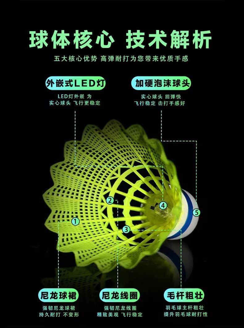 361 ° 正規品発光バドミントン夜光ボールセット夜は高弾力で耐打しにくい防風ボールを使います。