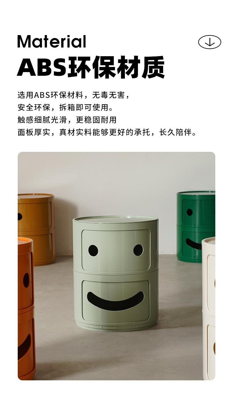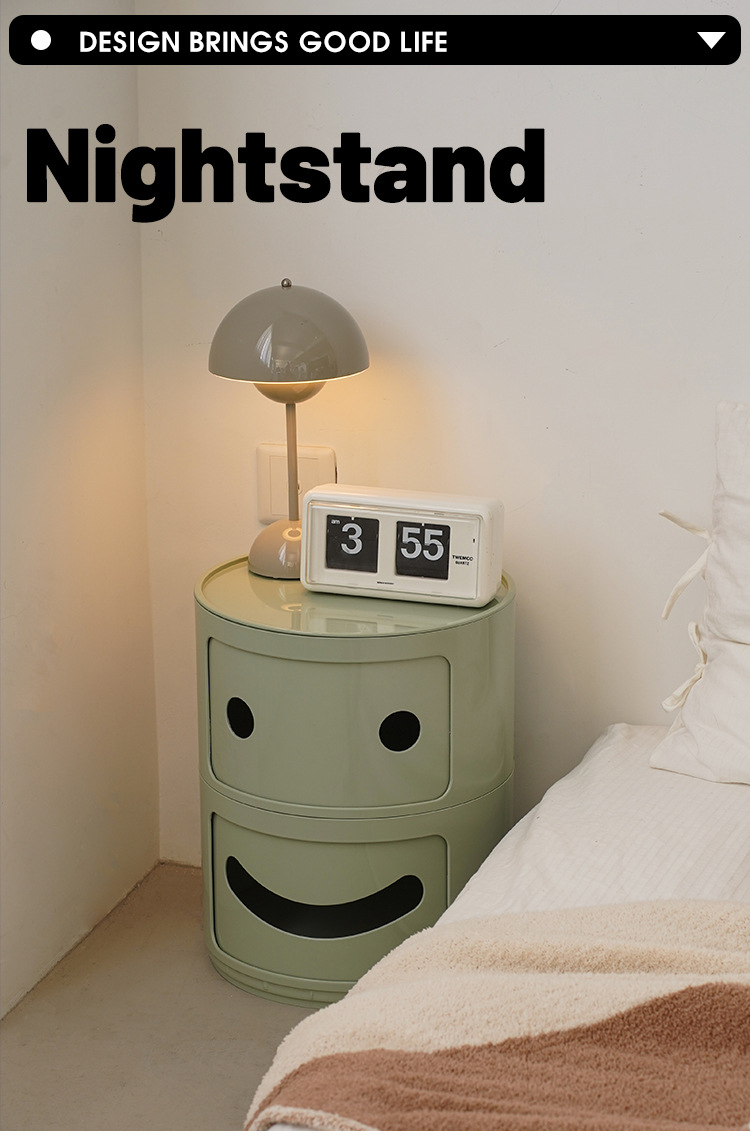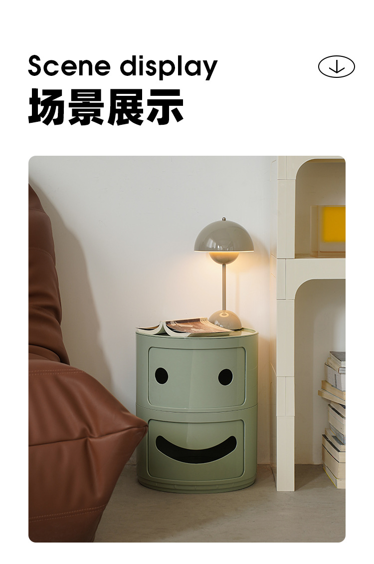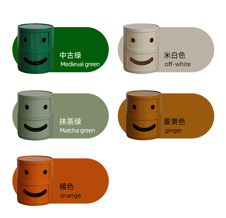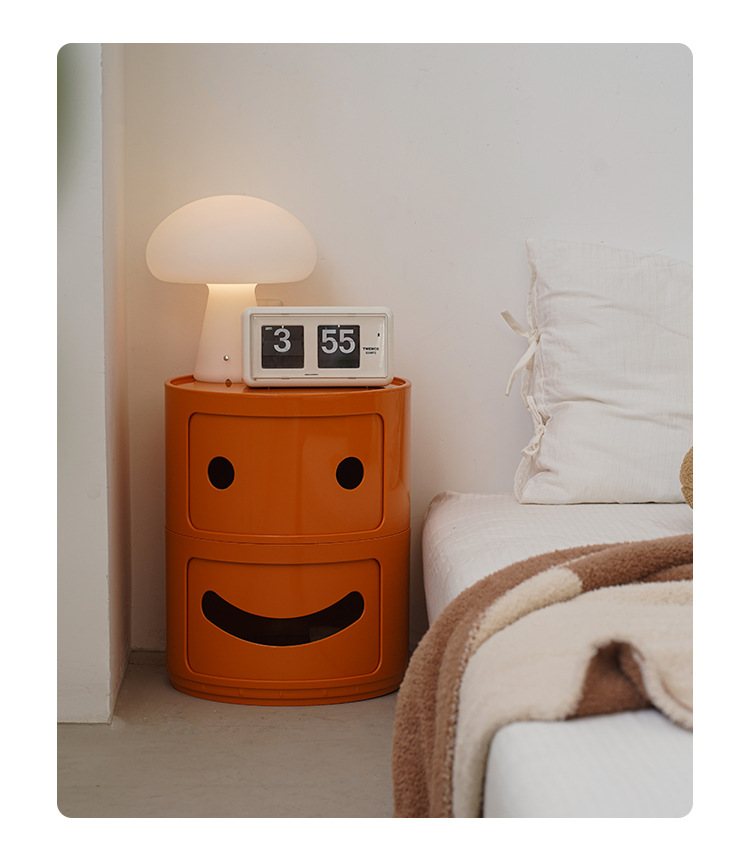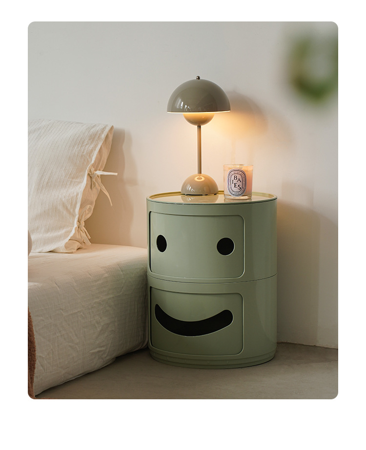 笑颜ラウンドクリエイティブ子供用ベッドサイドキャビネットモダンシンプル寝室insクリーム风かわいい収纳物置サイドキャビネット