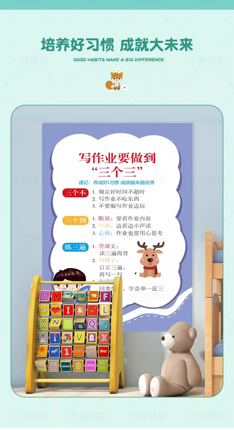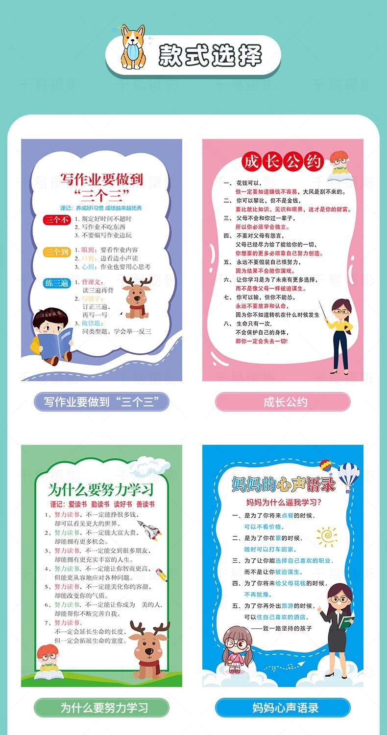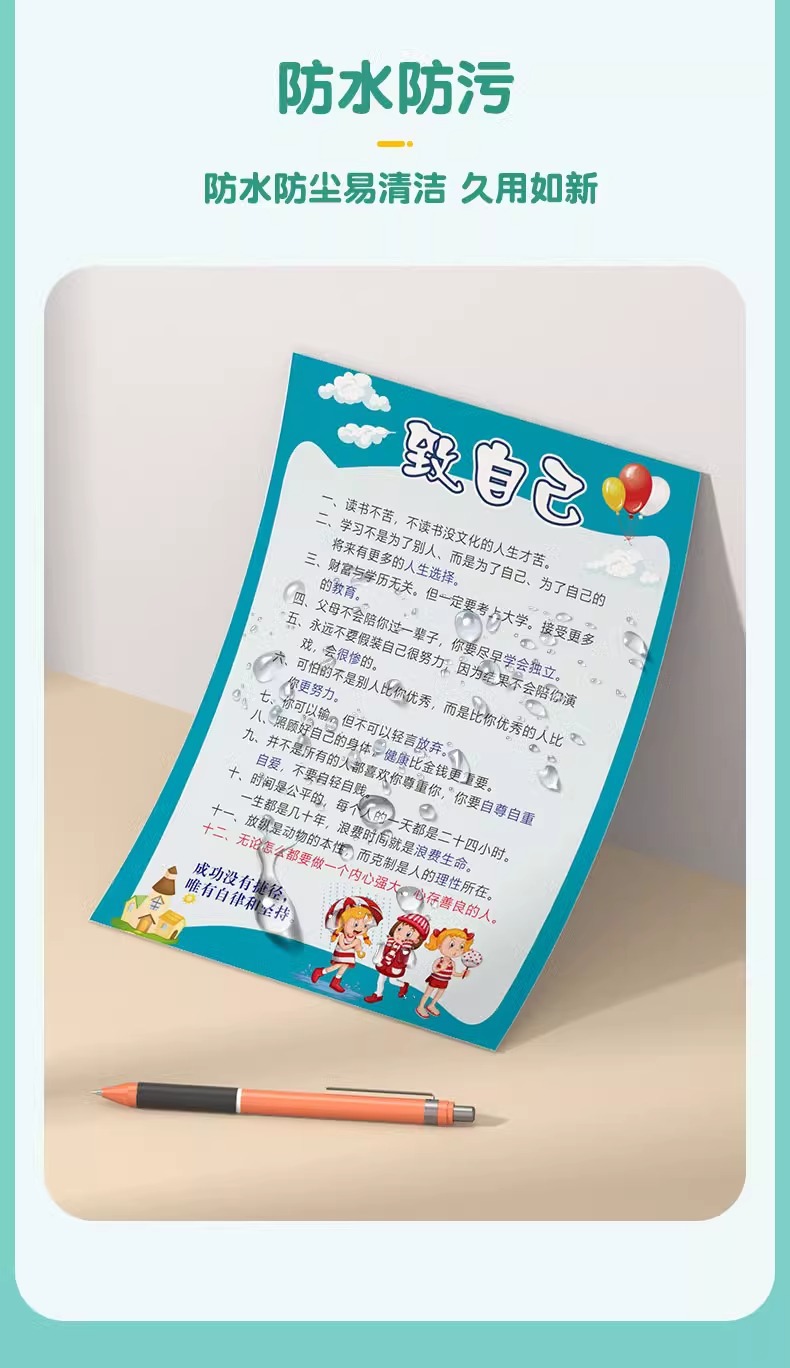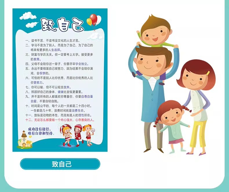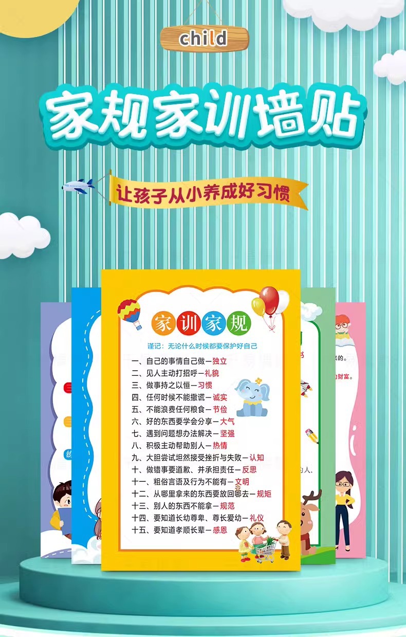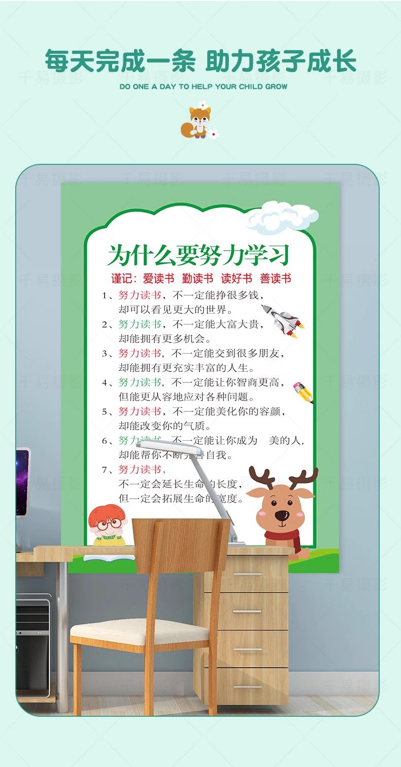 家訓家規の壁に学生の励ましの文化の表題の言葉を貼って子供の成長の啓蒙の早教のフルセットの掛け図を掛けます。