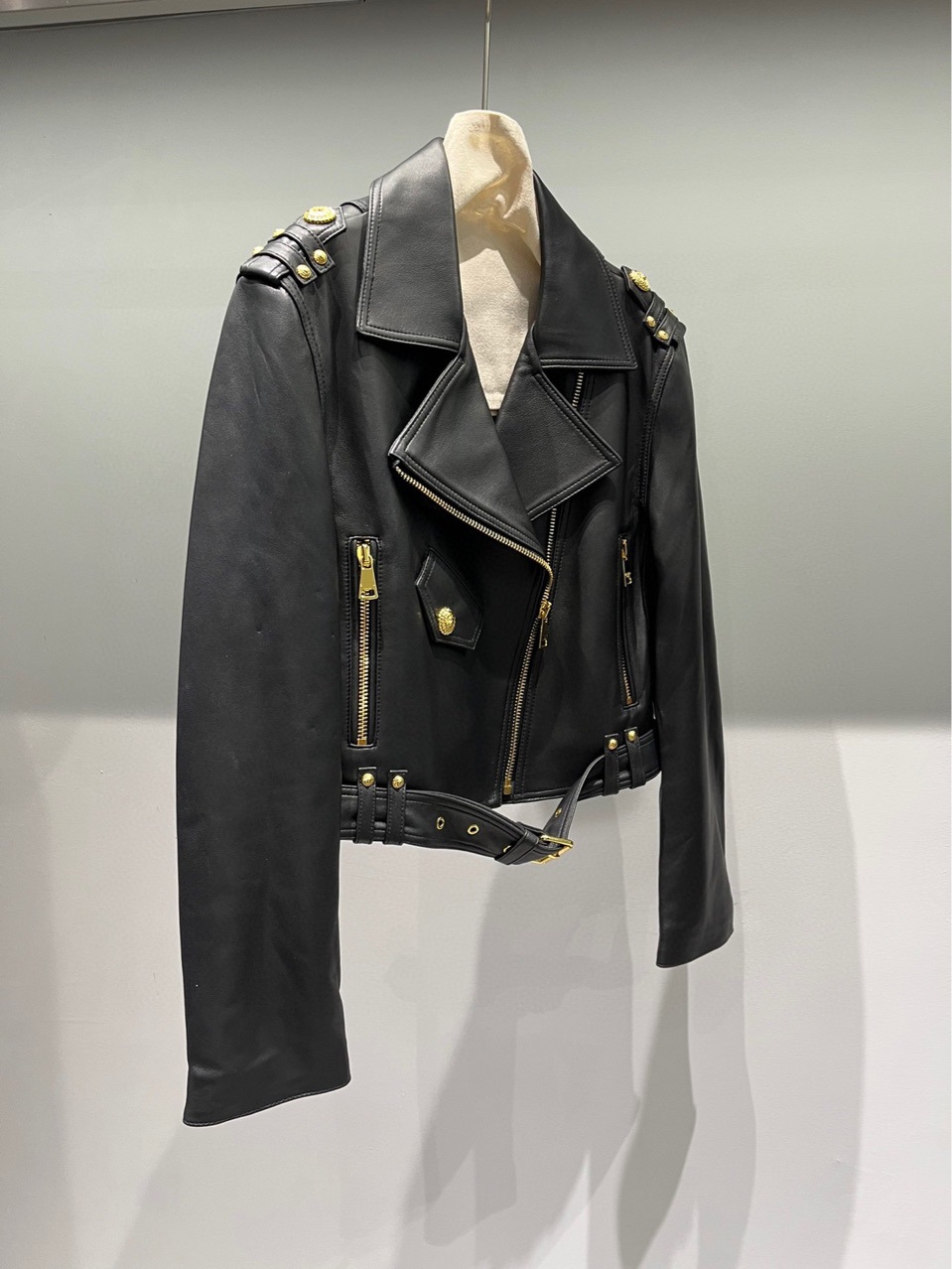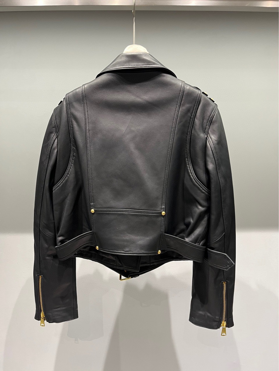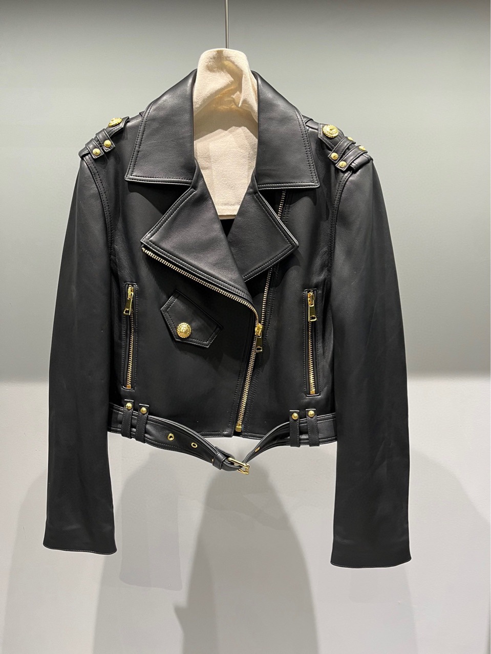 本革の皮の服の秋の新型の羊皮のファスナーの機関車の金のボタンのコートのベルトは身を修めてやせている気質の皮のジャケットを現します。