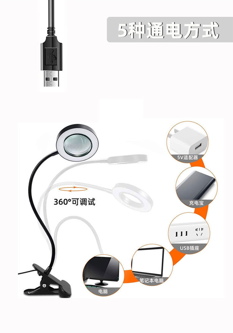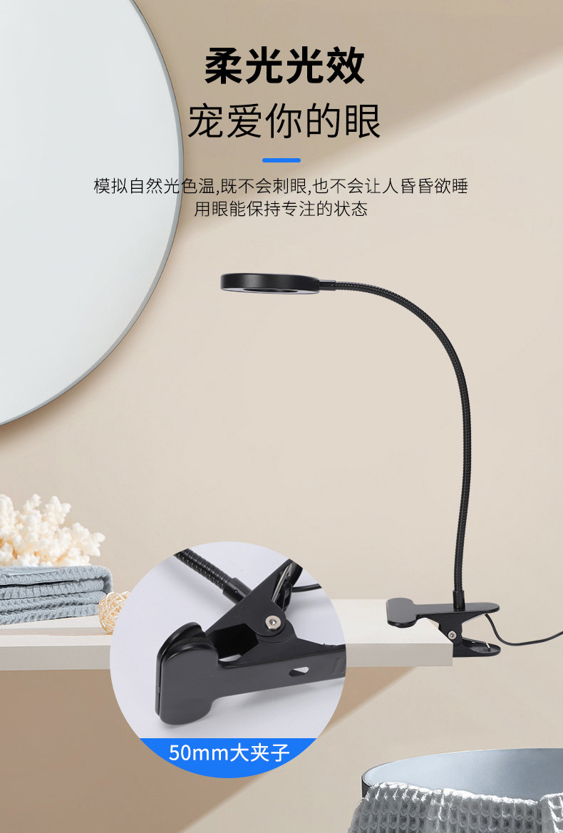 クリップライトLEDルーペライト付き美容補光携帯式ホーススタンド修理ネイル美容作業灯