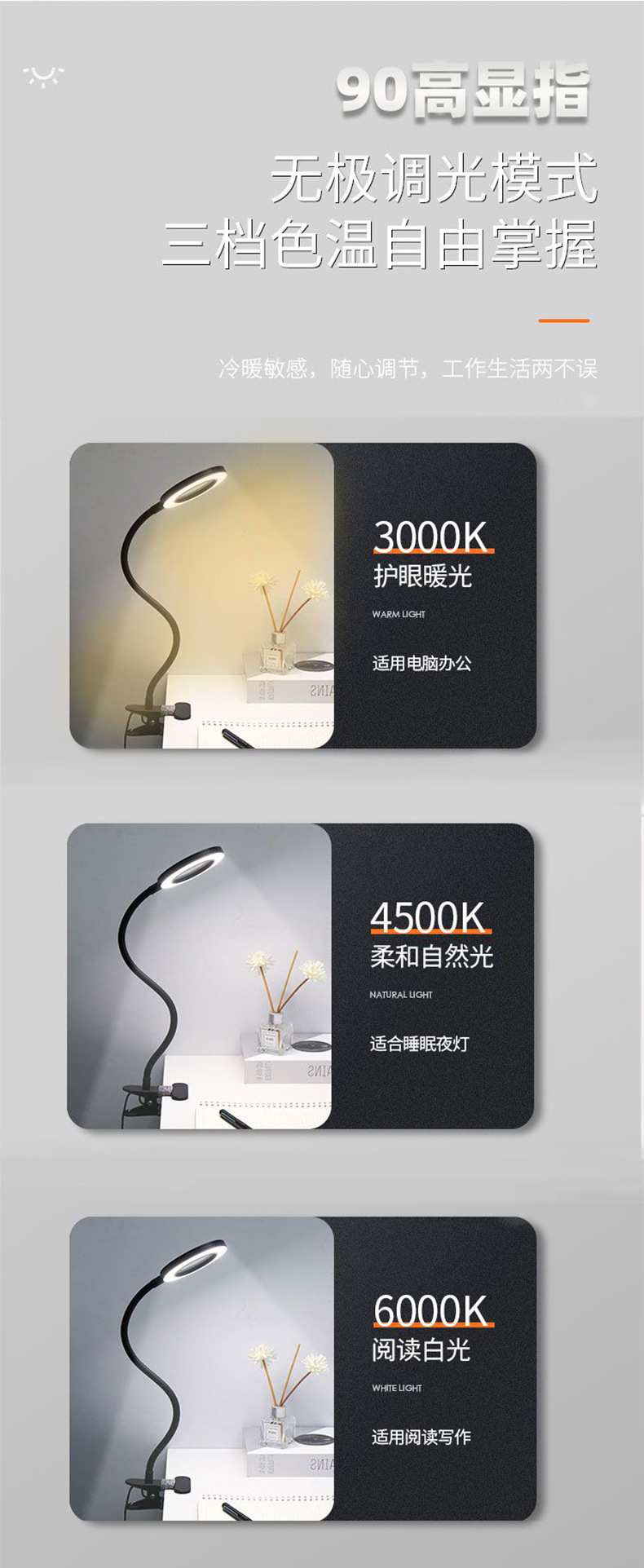 LEDデスクランプ 目に優しい 学生の学習 読書 ネイルアート 美容 眉毛刺繍 自撮り 補助光 卓上クリップライト