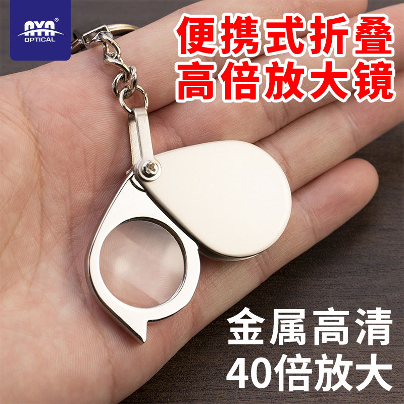 亜鉛合金製40倍光学ガラス拡大鏡折りたたみ式キーホルダー、ジュエリー鑑定用高精度顕微鏡