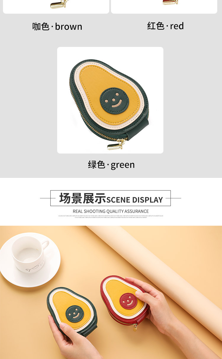 新しい漫画風アボカド型カードホルダー、クリエイティブでトレンディなアボカド型オルガン型マルチカードスロット付きIDカード・小銭入れ、携帯に便利