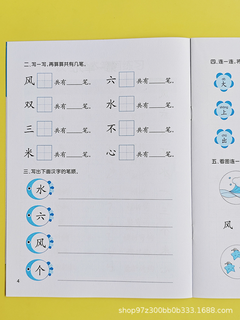 幼稚園の習字帳 漢字 ピンイン 数字 中級・上級クラス 就学前の書き順 部首 英語 足し算・引き算 幼児・小学生の移行期