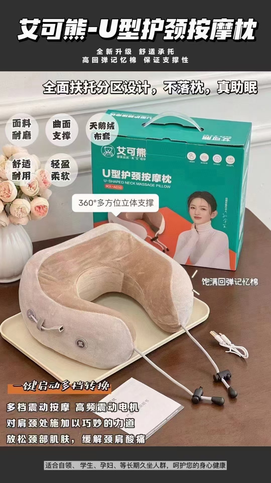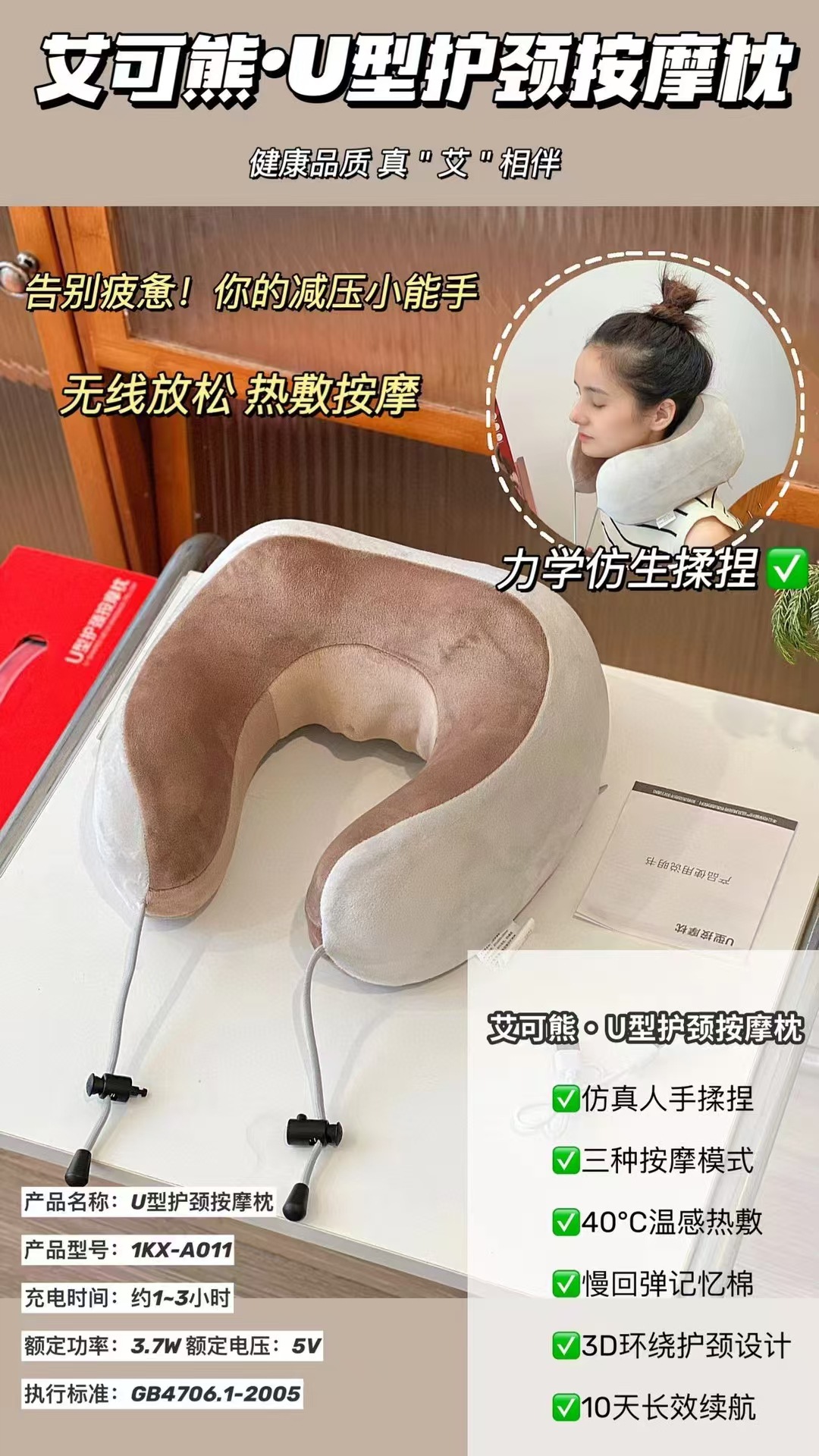 艾可熊u型マッサージ枕多機能家庭用頚椎マッサージ器ポータブルu型枕マッサージマントプレゼント