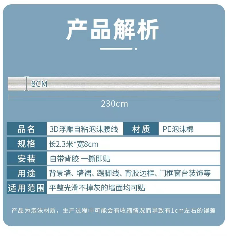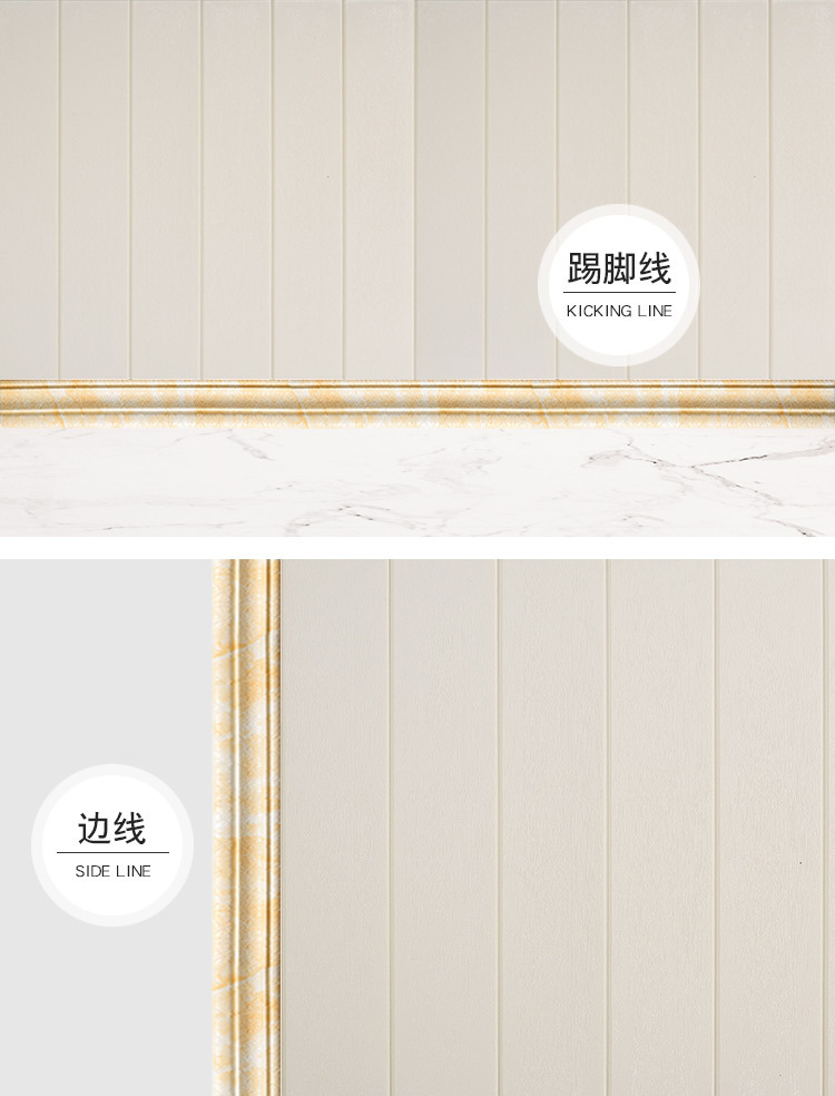 BR跨境踢脚线自粘墙角线超厚腰线墙面装饰贴纸房间装饰条封边墙贴