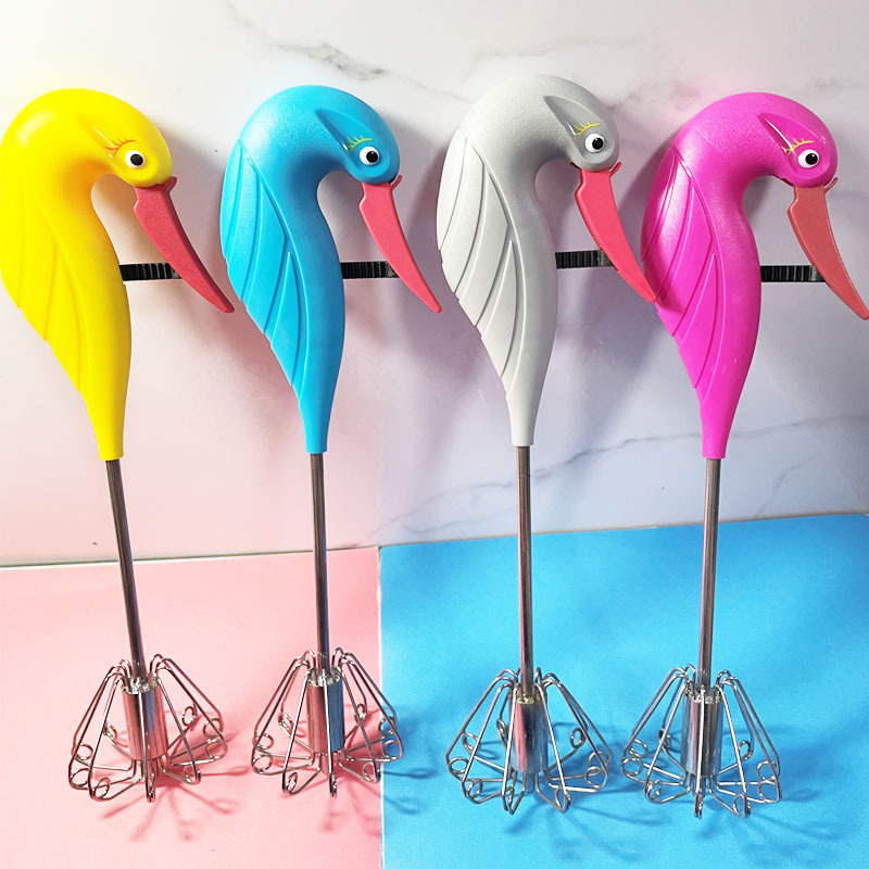 クロスボーダー小鳥半自動卵泡立て器ステンレスキッチン焙煎手持ち卵撹拌器手動押し回転アイデア
