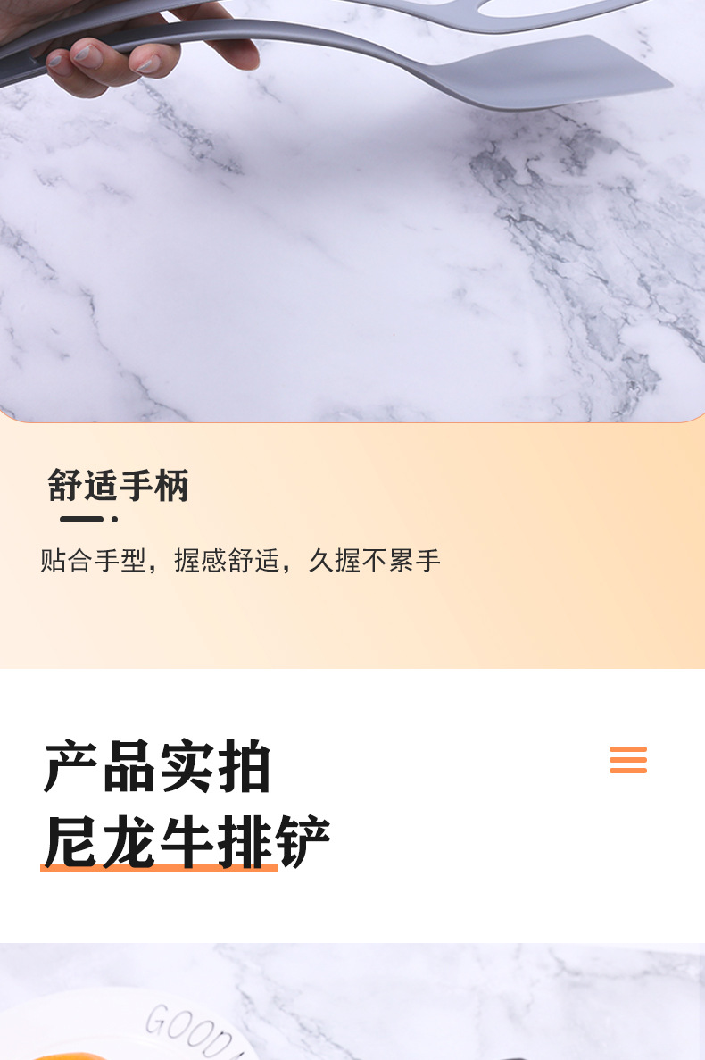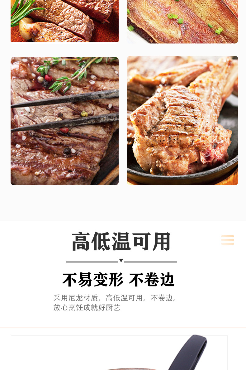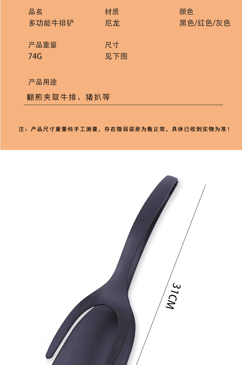 ナイロンステーキシャベルは高温に耐えられます。シャベルは二合一のステーキシャベルを挟むことができます。