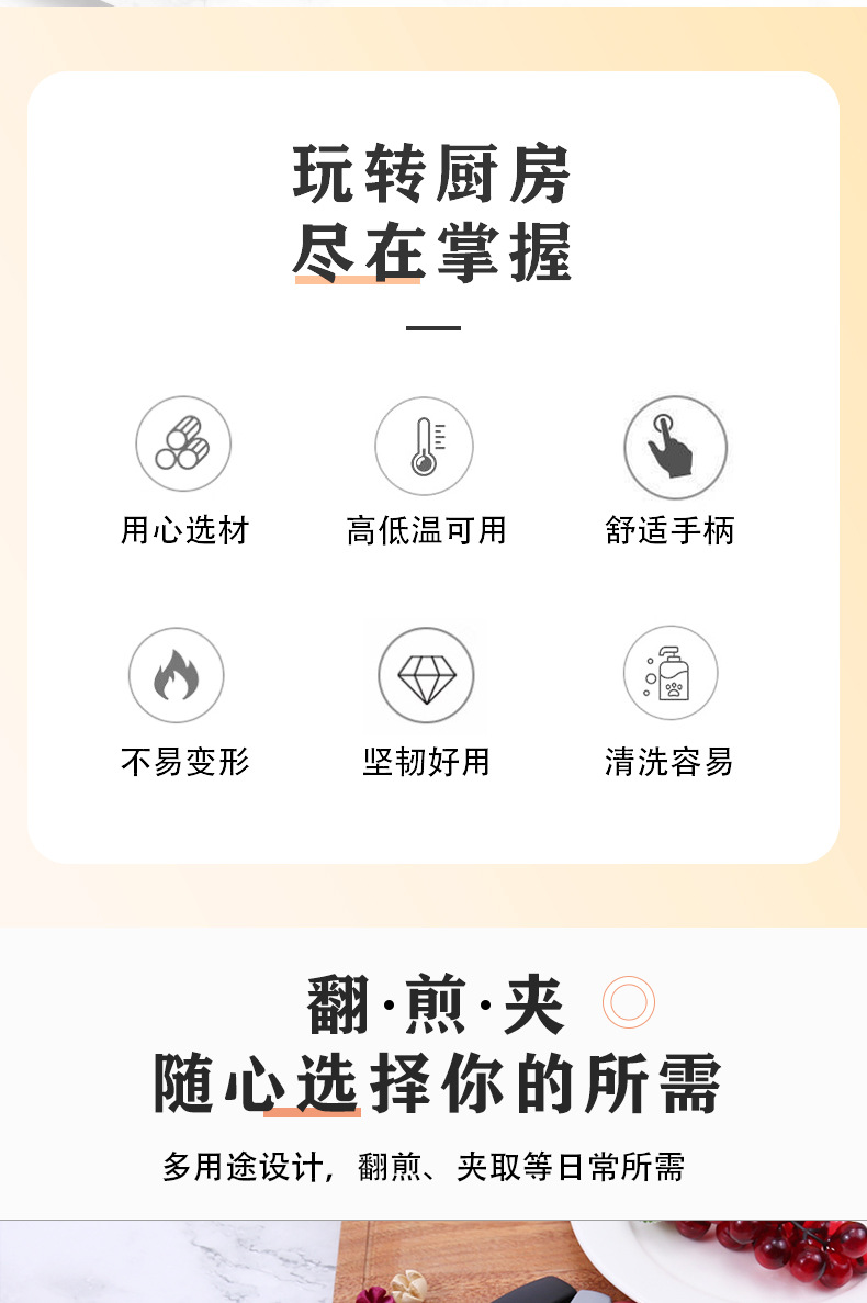 ステーキスパチュラ、フライパンスパチュラ、ツーインワンナイロンスパチュラ、フードクリップ、エッグスパチュラ、トーストパン、オムレツクリップ、フリップスパチュラ