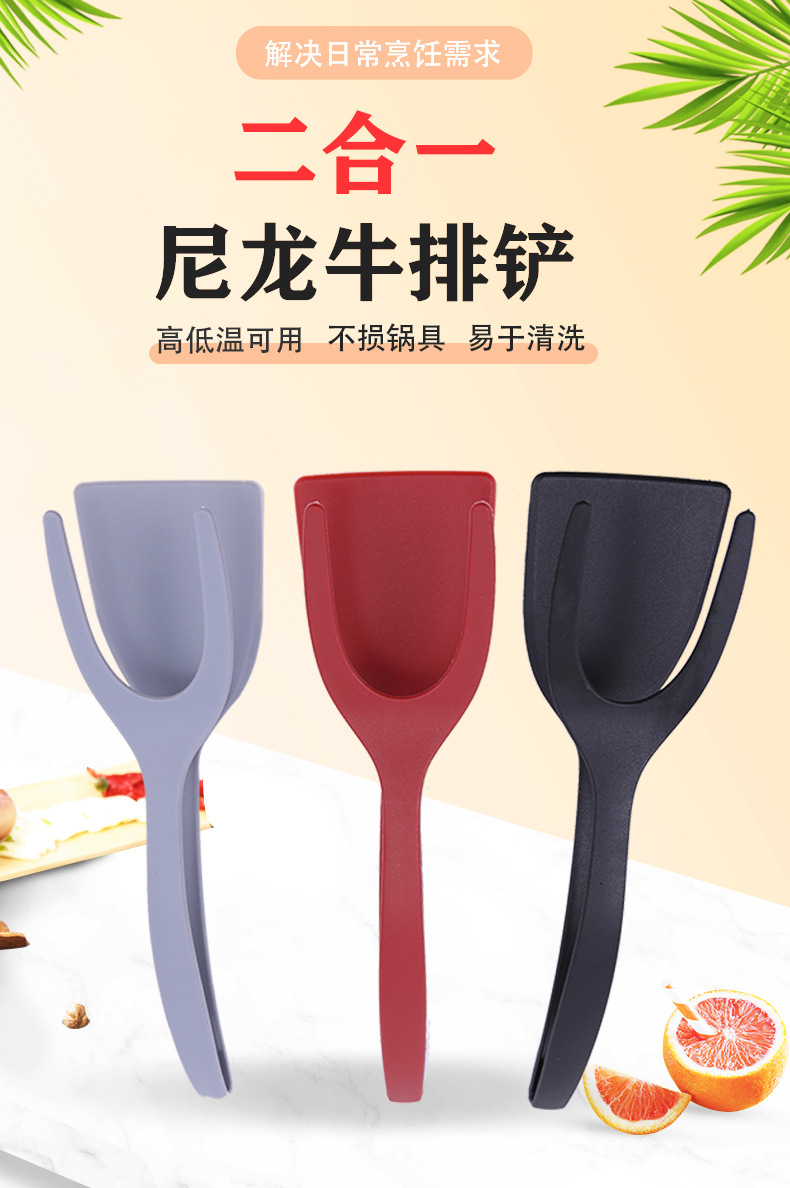ナイロンツーインワンステーキスパチュラキッチン多機能ステーキオムレツフライドフィッシュトーストフードクリップツールクッキング
