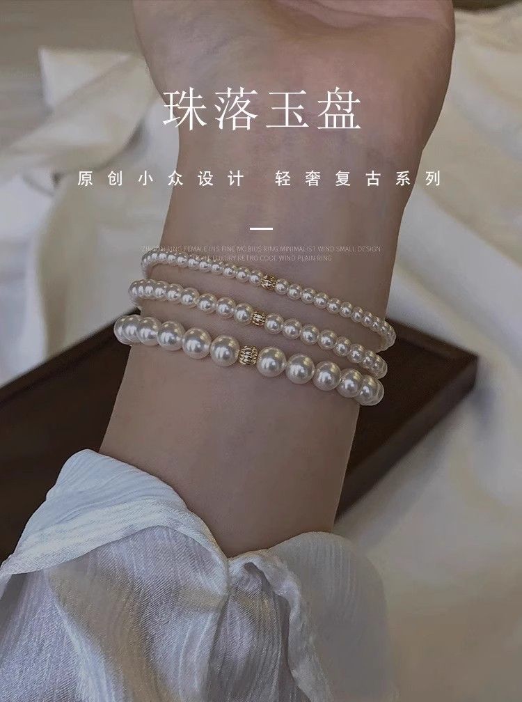 フランスのレトロな真珠のブレスレットの女性の軽豪華な小さい大衆のデザイン感の手の串のファッションの気質の百合の高級感のアクセサリー
