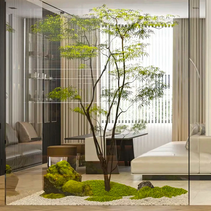 コケの芝生のコケの室内の造景をシミュレーションします。