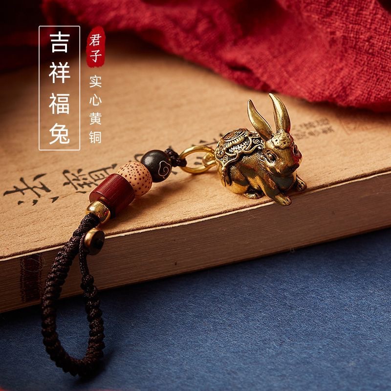 純粋な真鍮のウサギの本命年の自動車のキーホルダーのペンダントの古風な男性の女性のカバンのペンダントの電気自動車の装飾品