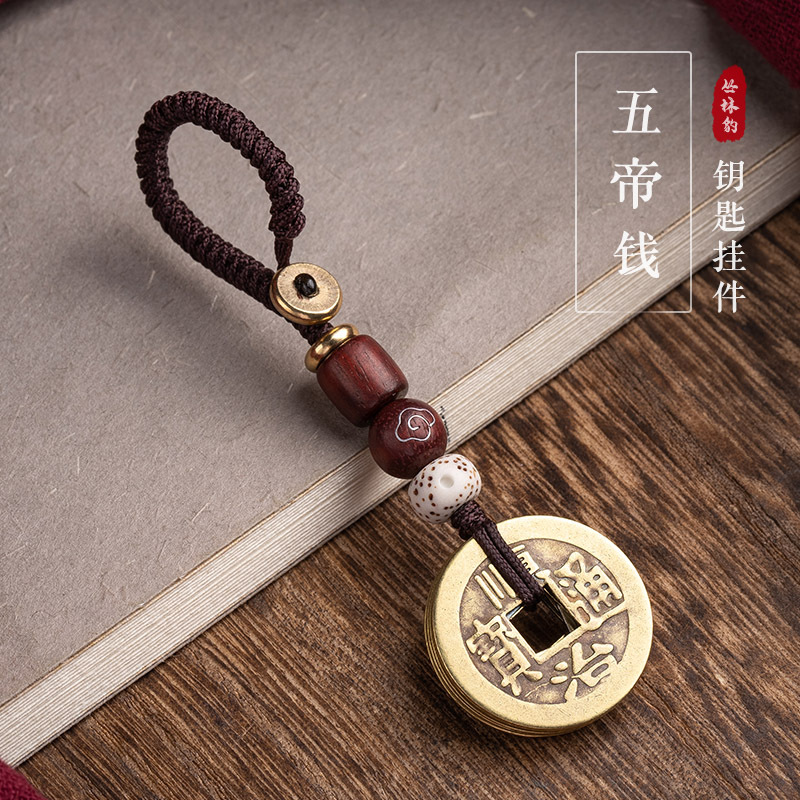 純粋な黄銅の五帝のお金の鍵は黄銅の自動車の鍵のペンダントの本命の年の平安の男女の精巧な創意の贈り物を掛けます。