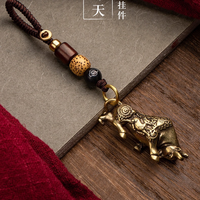 クリエイティブ真鍮干支幸運牛車のキーホルダーペンダントレトロ古い牛ペンダントアクセサリー卸売