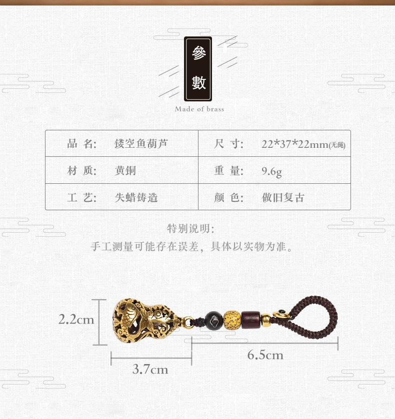 『福禄有余』真鍮の小さいヒョウタンのキーホルダーのアクセサリーのペンダントの男性の女性の高級な自動車のキーホルダーのペンダント