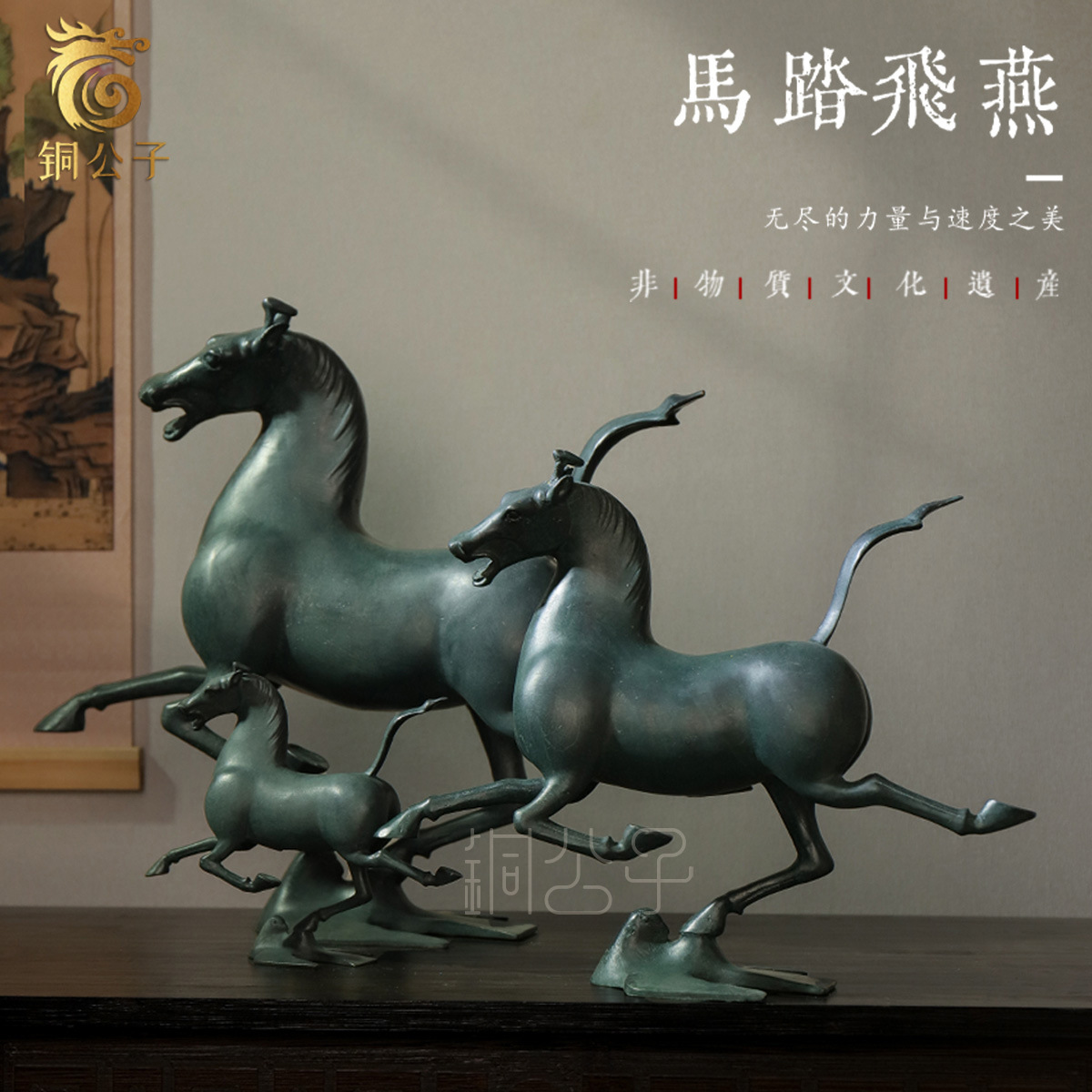 レトロ馬踏みフライングツバメアンティークブロンズ装飾品銅ランニング馬高シミュレーション装飾品リビングルーム研究装飾ギフト