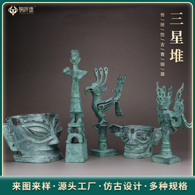 三星堆青銅器コレクション、アンティーク工芸品、太立人、サンバード、人頭像、工場直販品、卸売