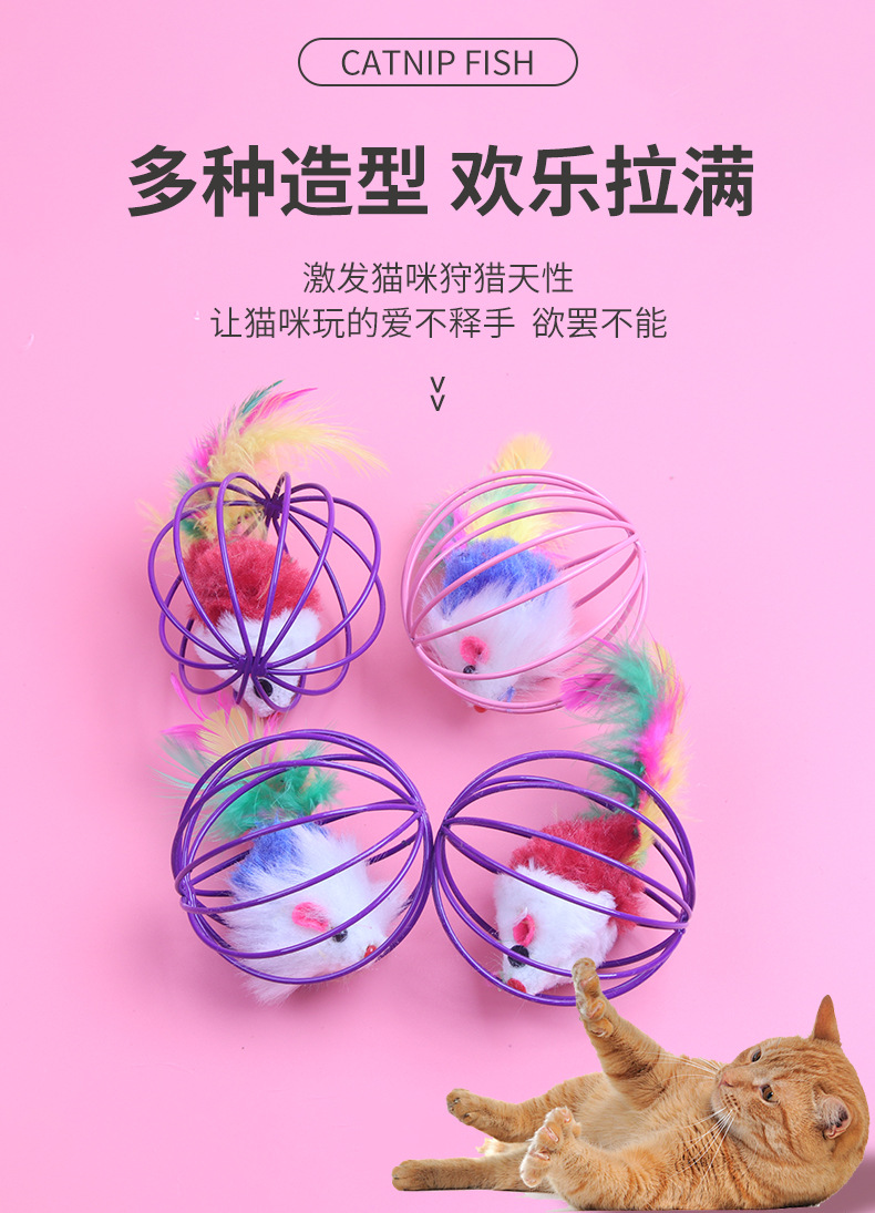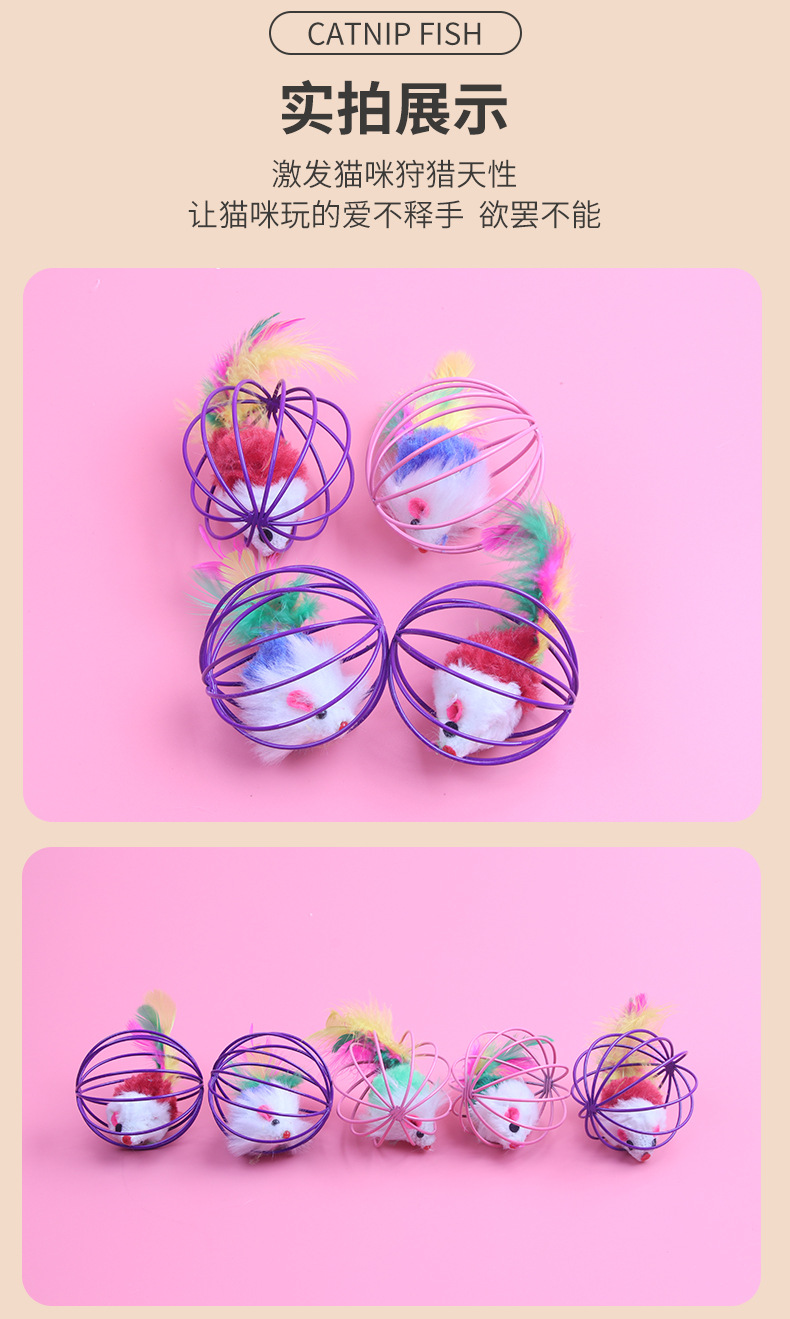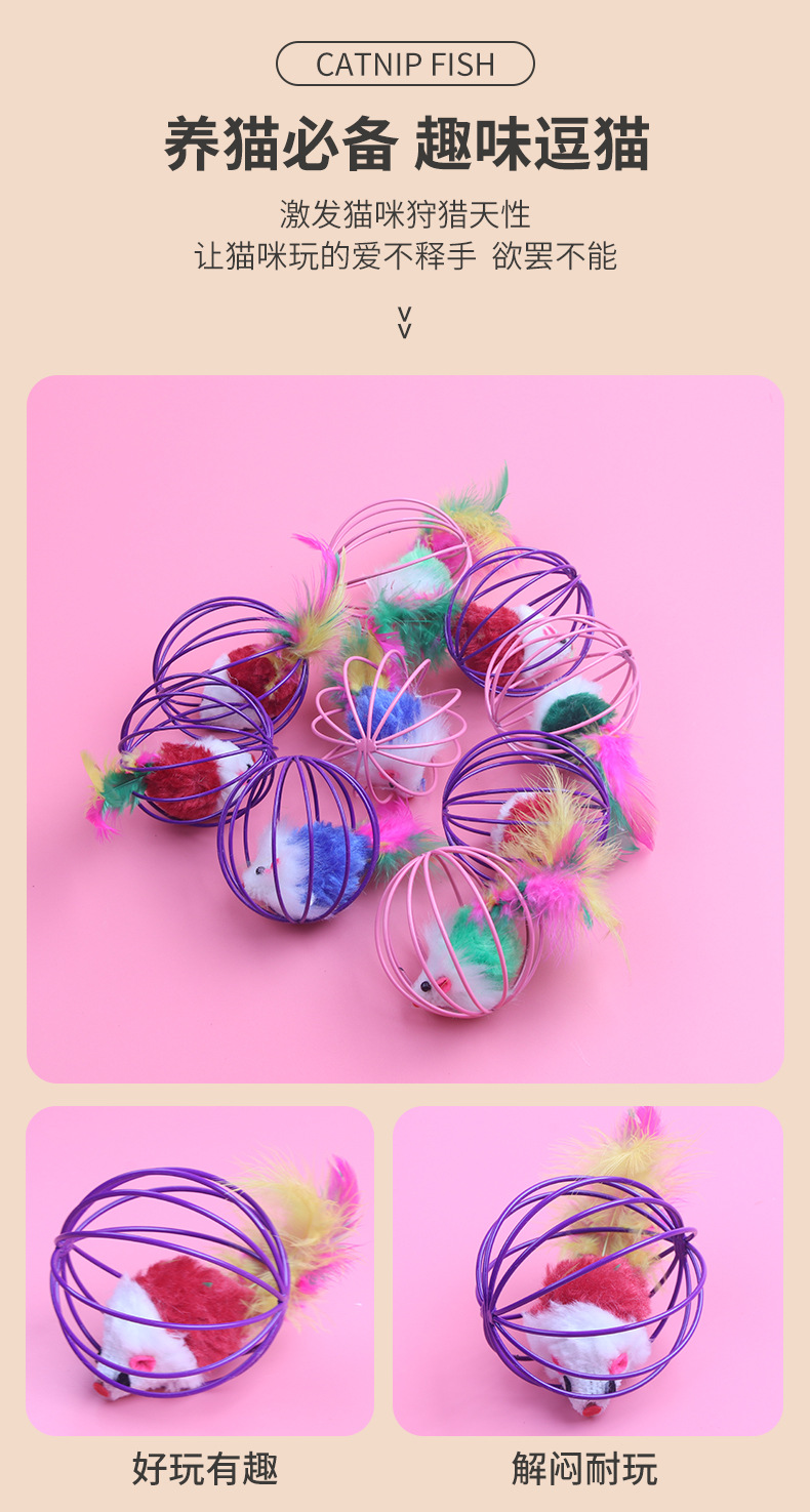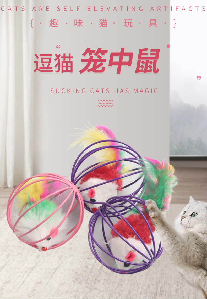 クロスボーダーの新型猫のおもちゃの猫はボールをつかんで羽毛を持ってかごの中でネズミのインタラクティブなおもちゃのボールのペット用品の卸売りに耐えます。