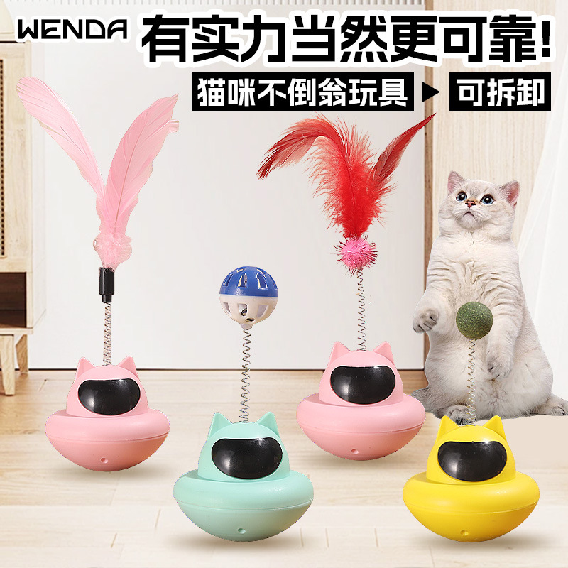 跨境批发猫咪不倒翁羽毛逗猫棒铃铛自嗨解闷猫咪玩具猫薄荷摇摇乐
