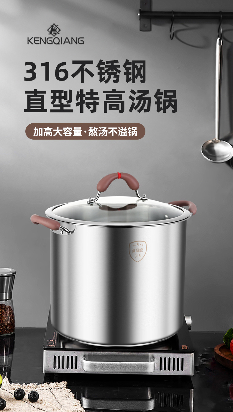 铿锵316L不锈钢汤锅家用加高加厚煲汤锅电磁炉专用大容量煮汤锅