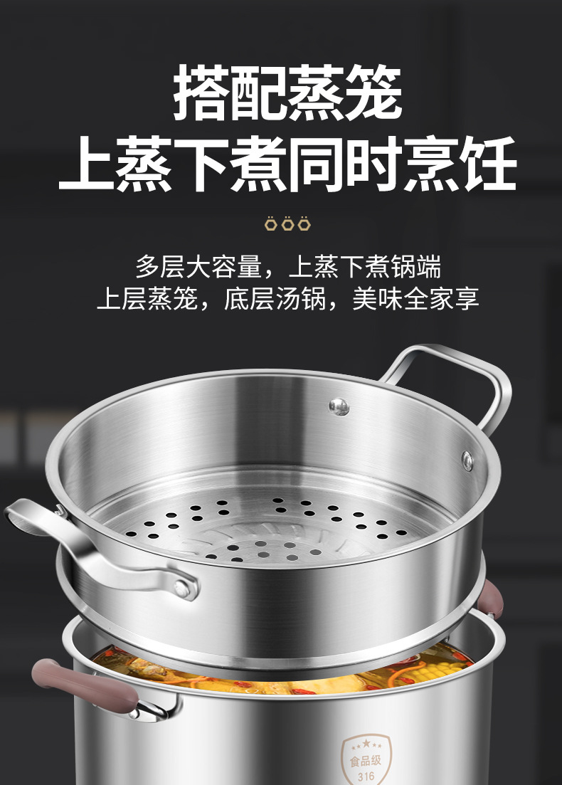 ドイツ316ステンレス蒸し鍋家庭用厚い二、三層スープ鍋鍋一体蒸し鍋電磁炉
