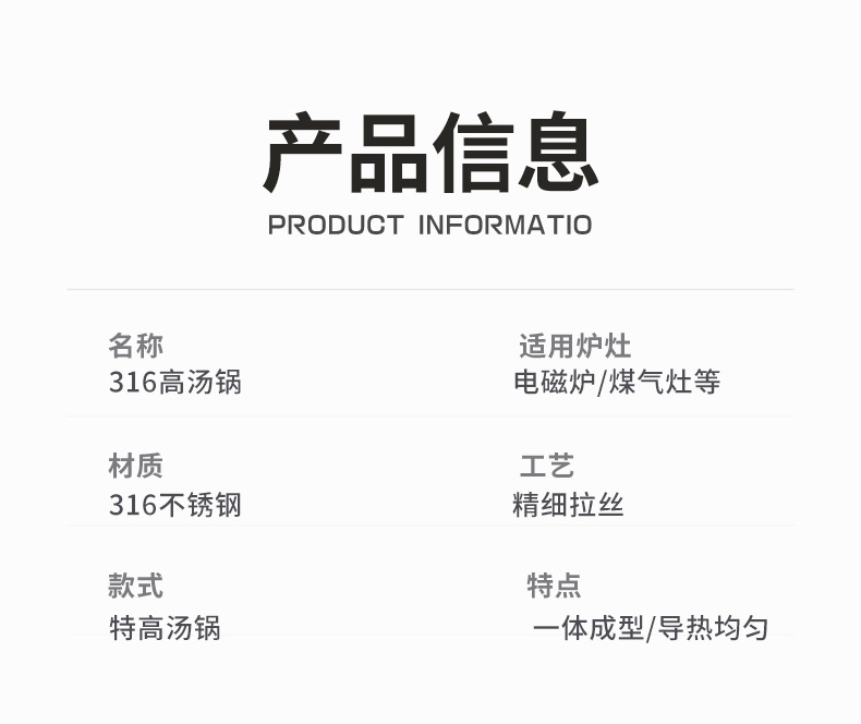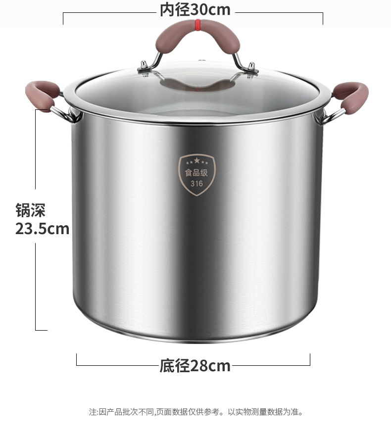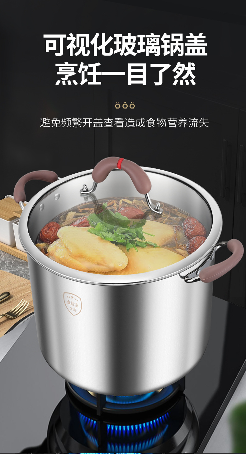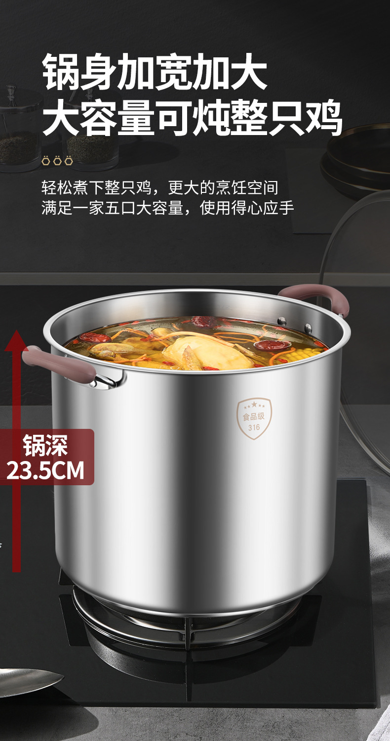 316ステンレススープ鍋深家庭用厚い食品級蒸煮ガス電磁炉専用煮粥高スープ鍋