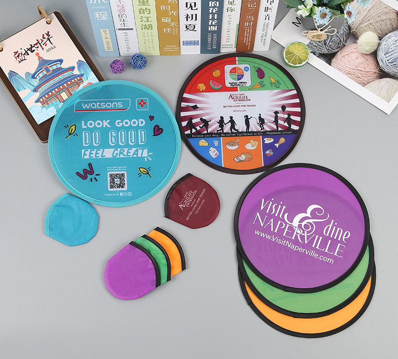 折り畳み可能なフリスビー空白携帯広告宣伝団扇折り畳み広告扇子両面ポリエステル印刷ロゴ