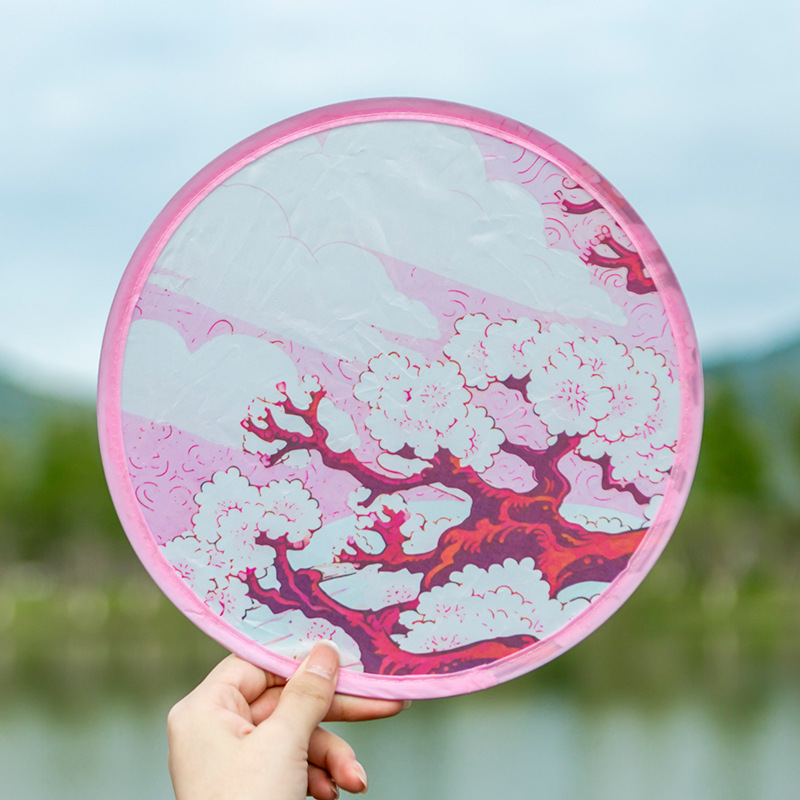 飞盘款折叠扇可爱卡通日系优雅动人美式可自行设计
