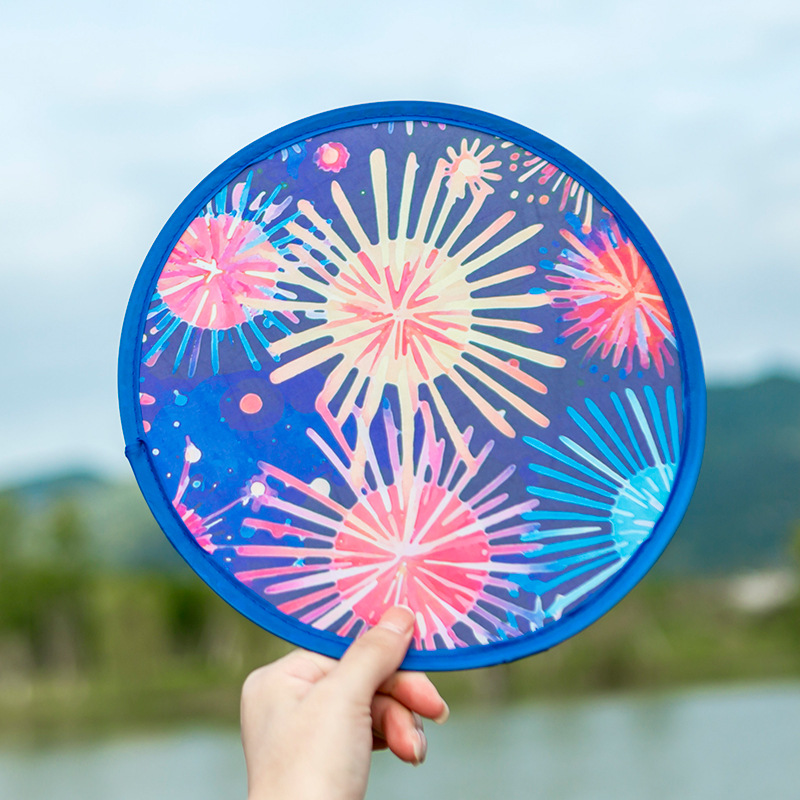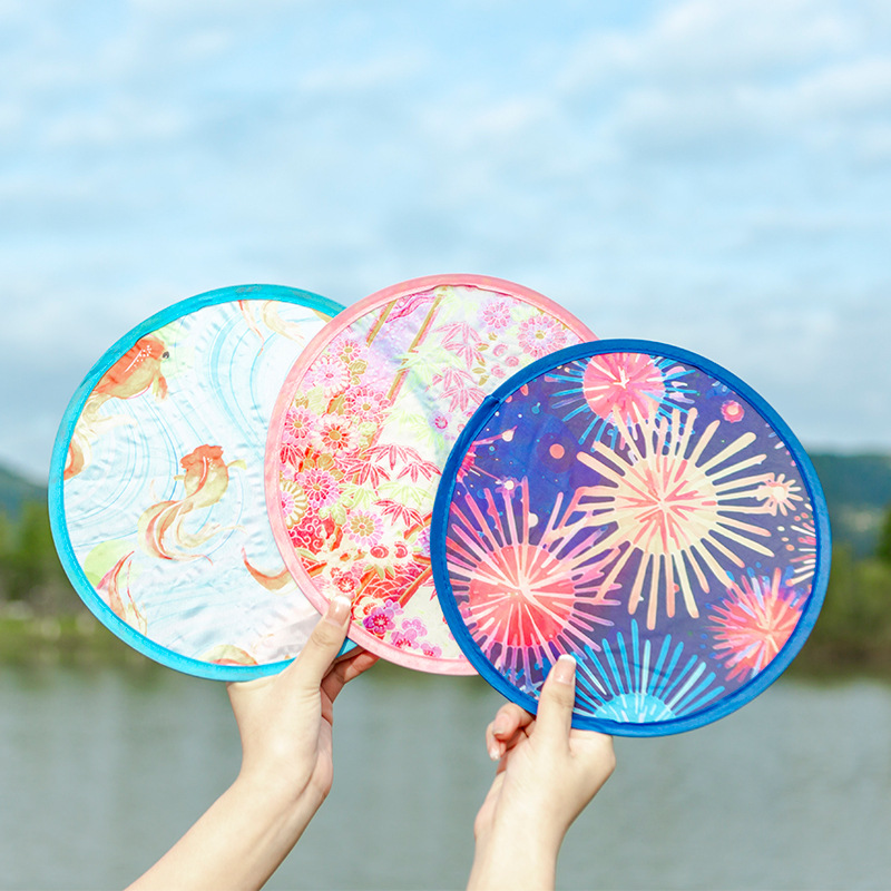 フリスビー扇子 ポリエステル布製丸扇子 サポーターズ扇子 和風 欧米風 広告扇子 折りたたみ扇子 無地 在庫あり カラー印刷