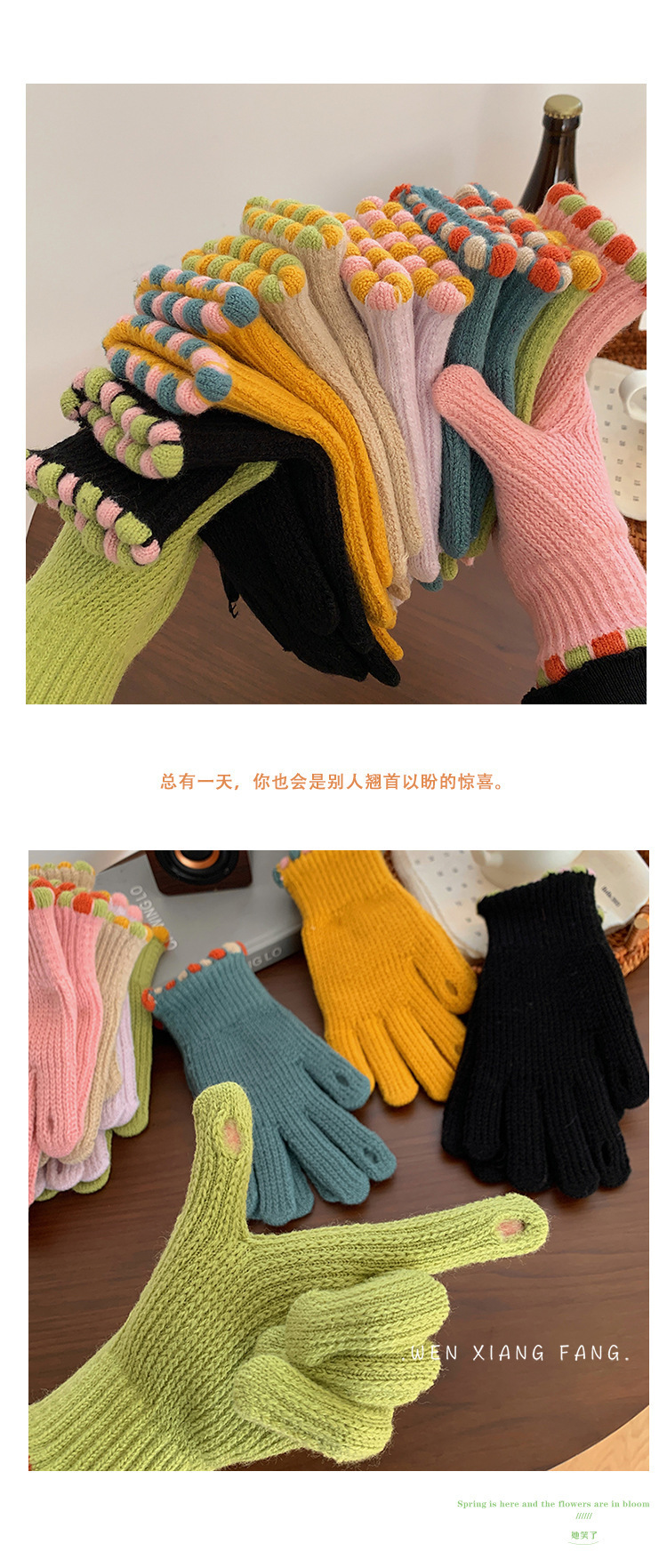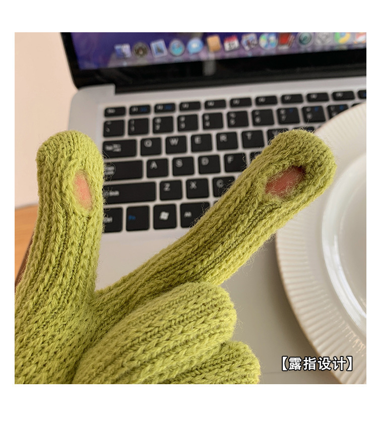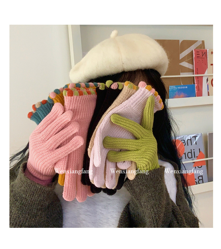 義烏直売韓国ins小糖豆冬露指毛糸針織女純色タッチパネル保温手袋卸売り